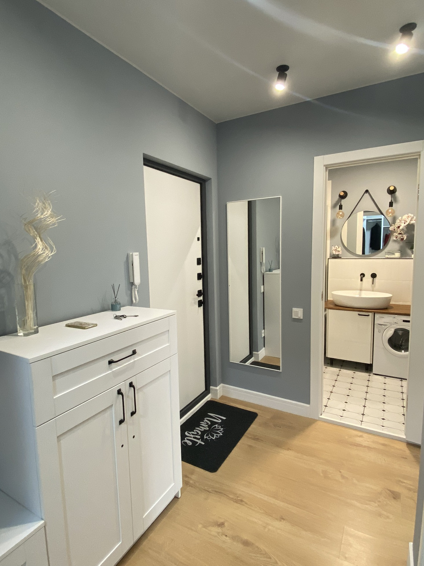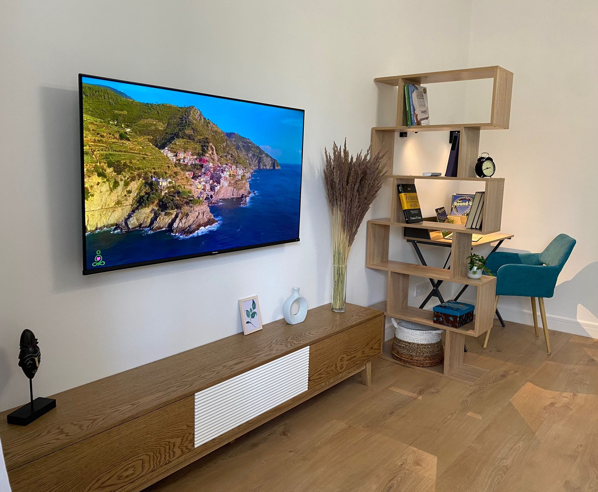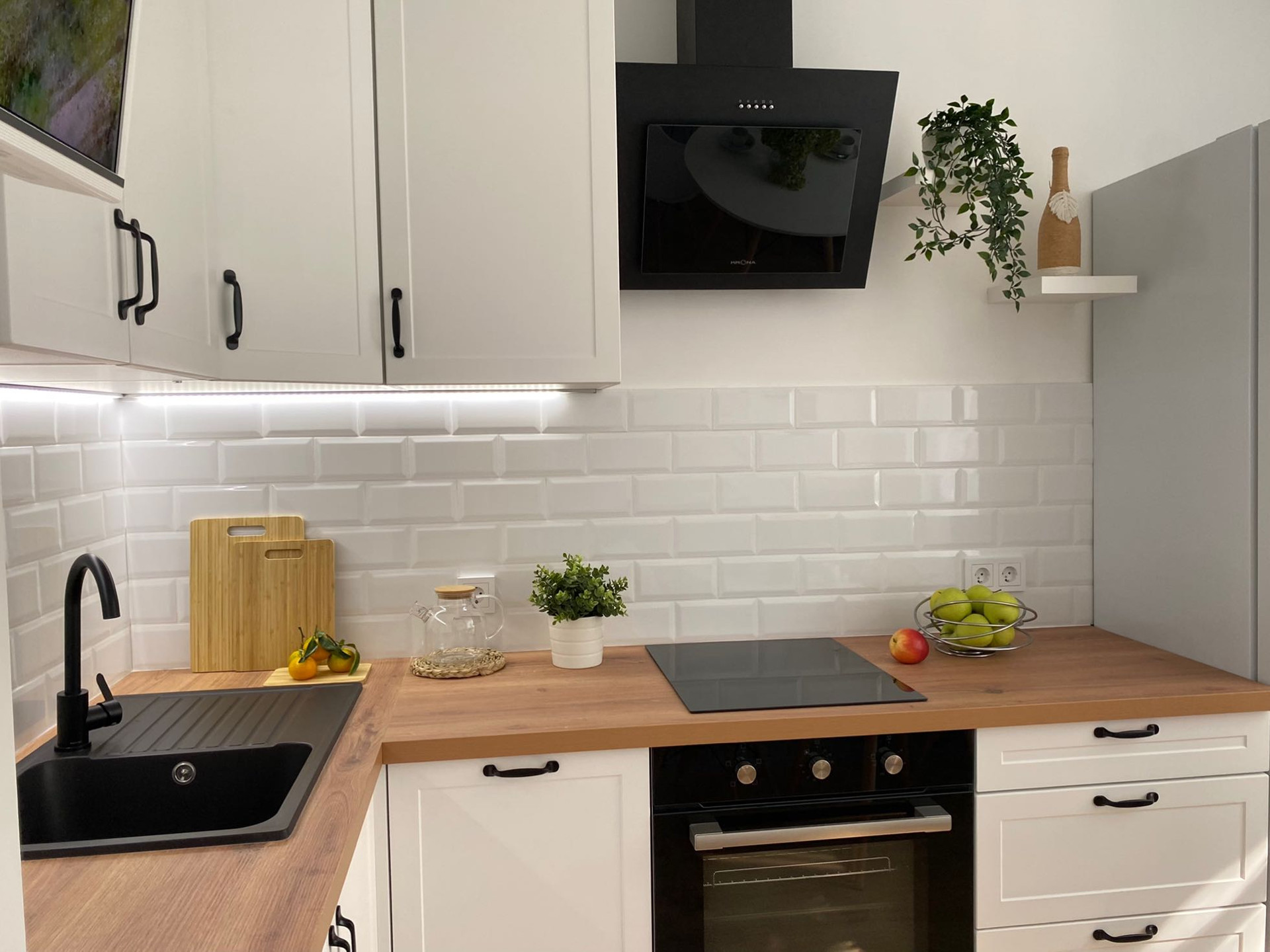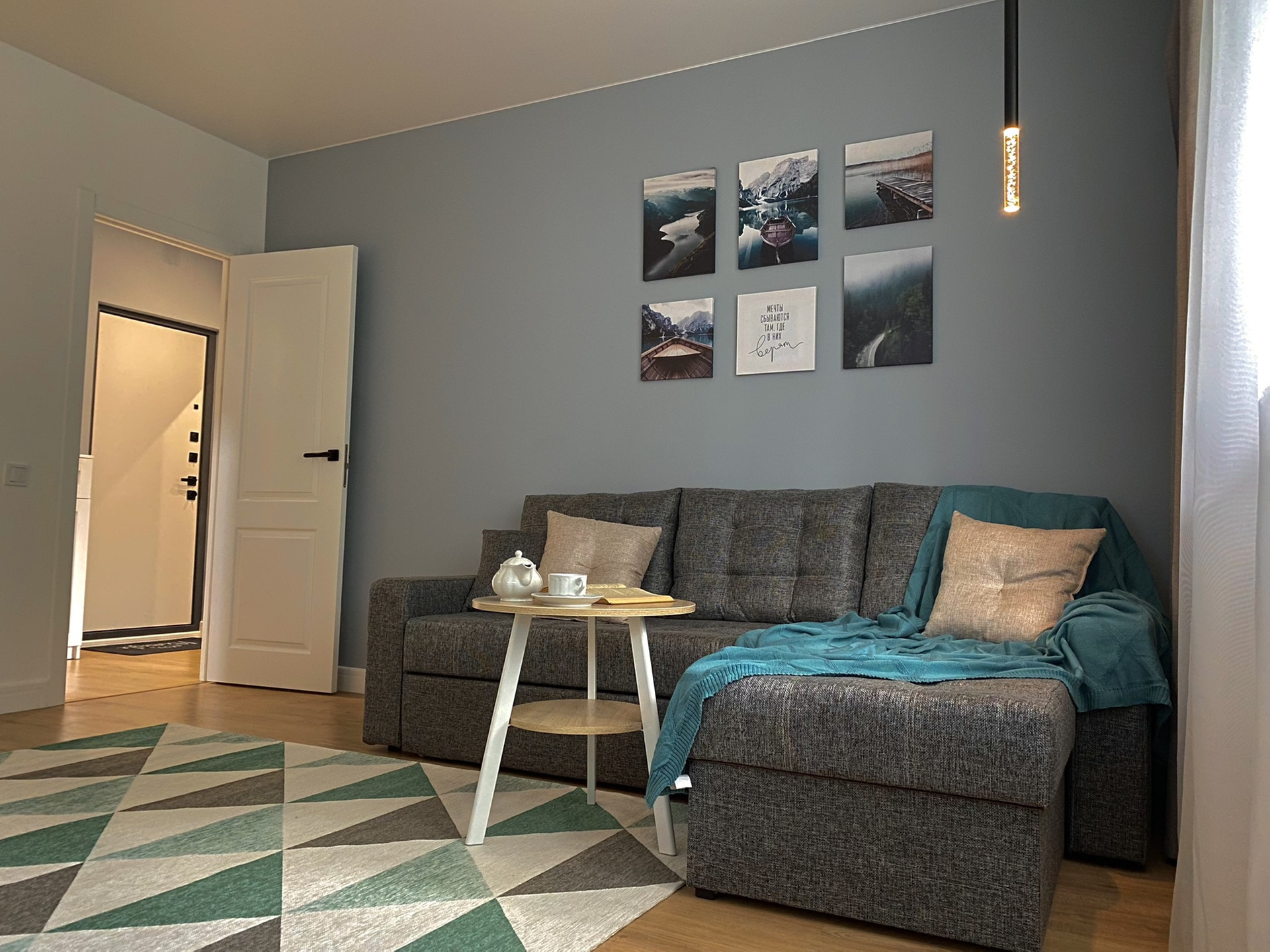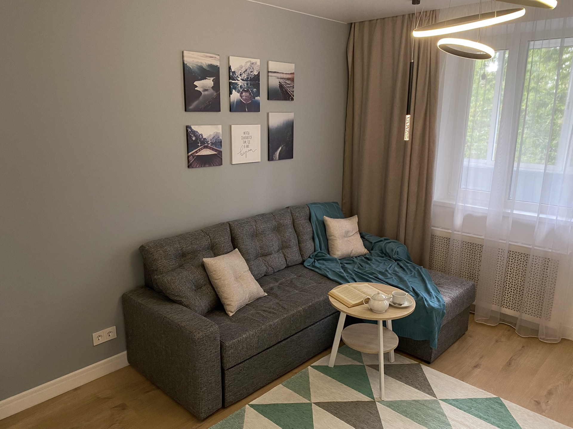 Выполнен свежий капитальный дизайнерский ремонт в скандинавском стиле с применением современных отделочных материалов. Квартира оборудована всей необходимой современной бытовой техникой (кондиционер, два телевизора 50" и 24", холодильник, посудомоечная машина, стиральная машина, духовой шкаф, варочная поверхность, вытяжка), мебелью и прочими предметами интерьера обеспечивающими комфортное и приятное проживание. Подсветка рабочей зоны на кухне срабатывает от взмаха руки.