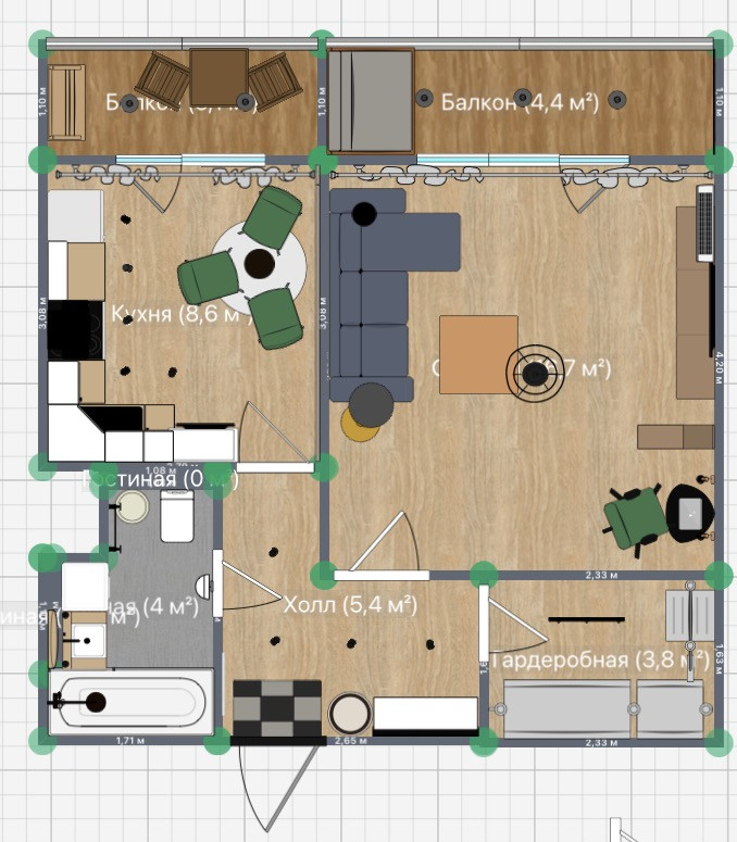 Две лоджии (3 и 4 м2), установлены новые стеклопакеты.