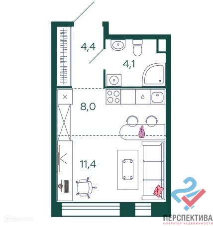 Общая площадь 28 м2