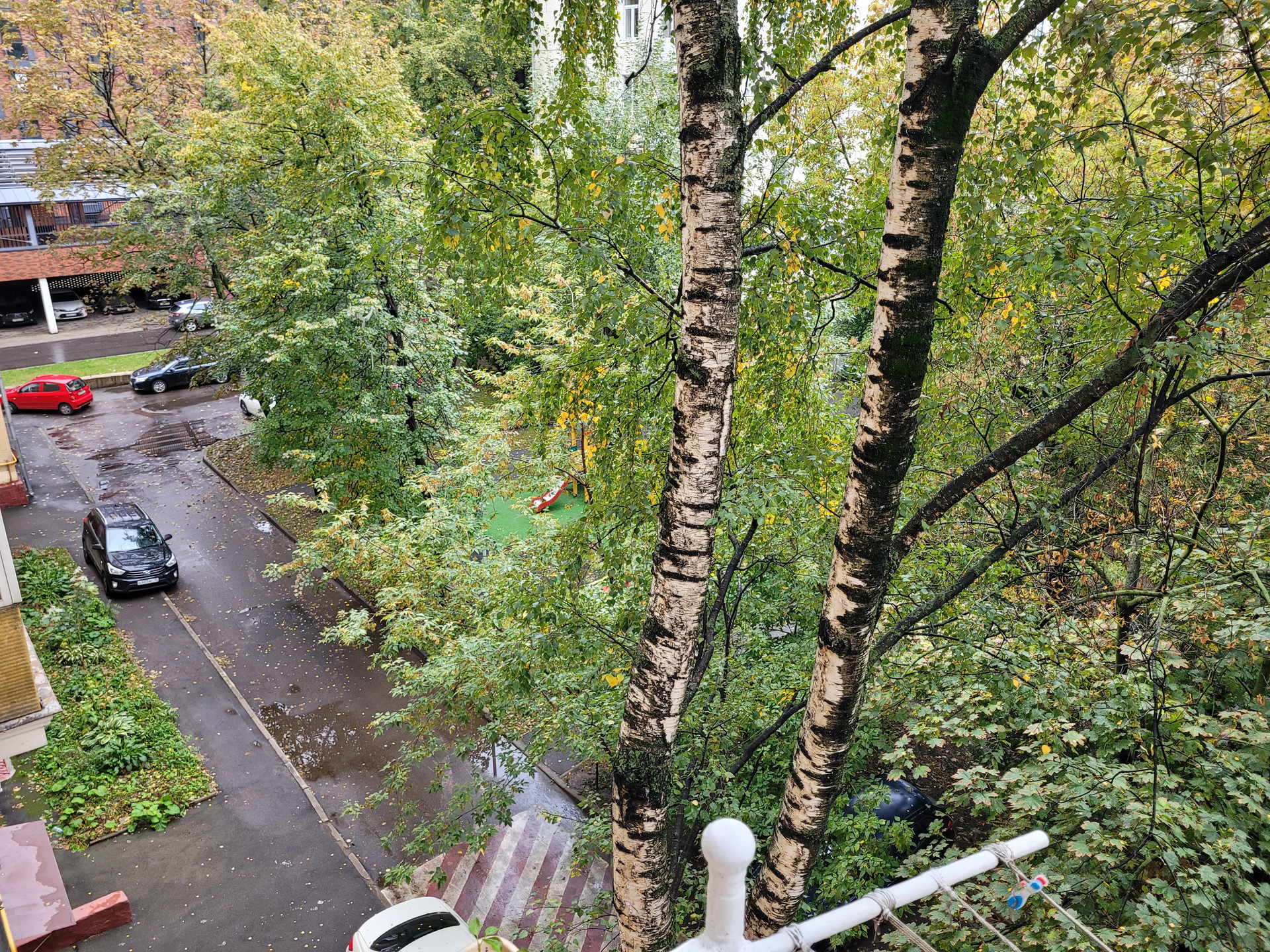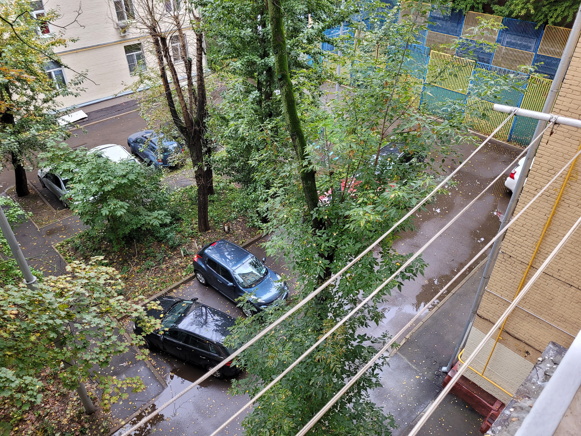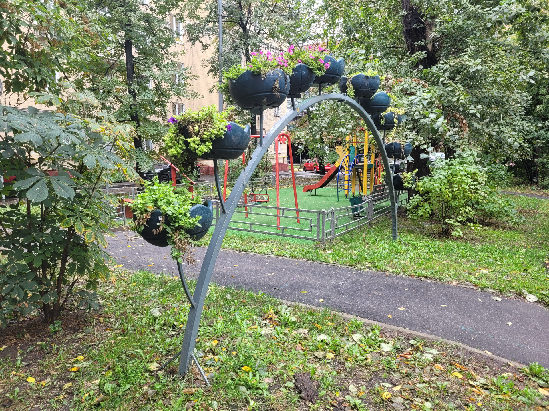 Во дворе, среди деревьев располагаются сразу несколько детских и спортивных площадок, а чуть далее в соседних дворах школы №547 и №1257.