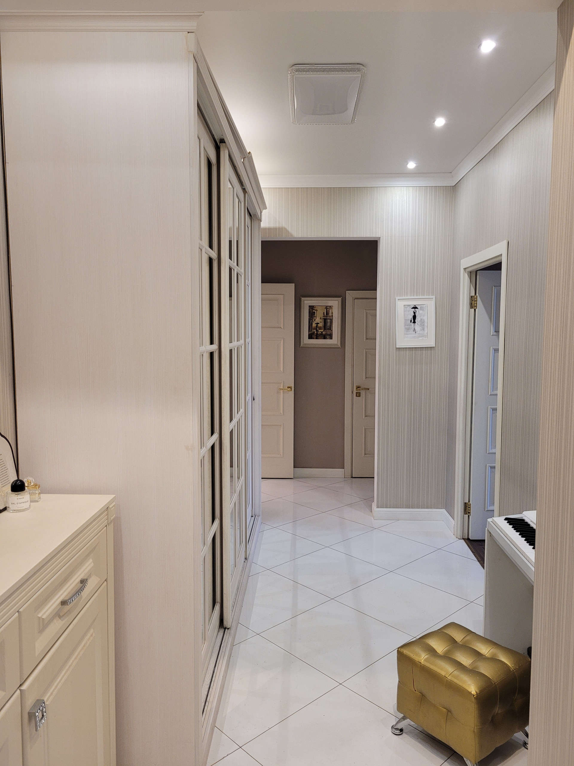 Перекрытия железобетонные многопустотные плиты толщиной 22 см, высота потолков составляет 310 см, наружные стены – кирпич толщиной примерно 51-64 см, внутренние межквартирные стены кирпич толщиной 51 см, все коммуникации центральные, газовая колонка отсутствует, великолепная шумоизоляция со всех сторон, этаж средний, балкон есть.