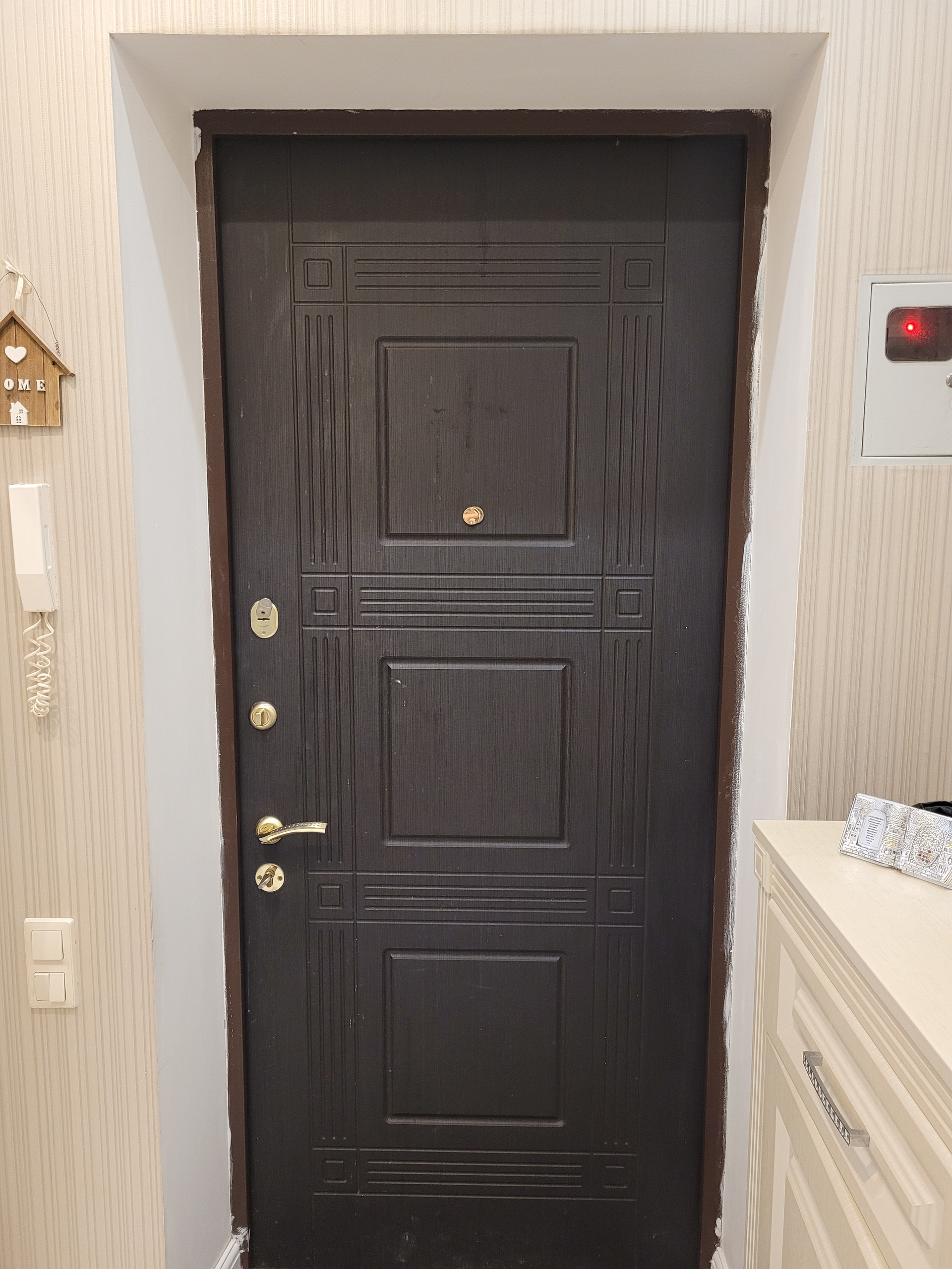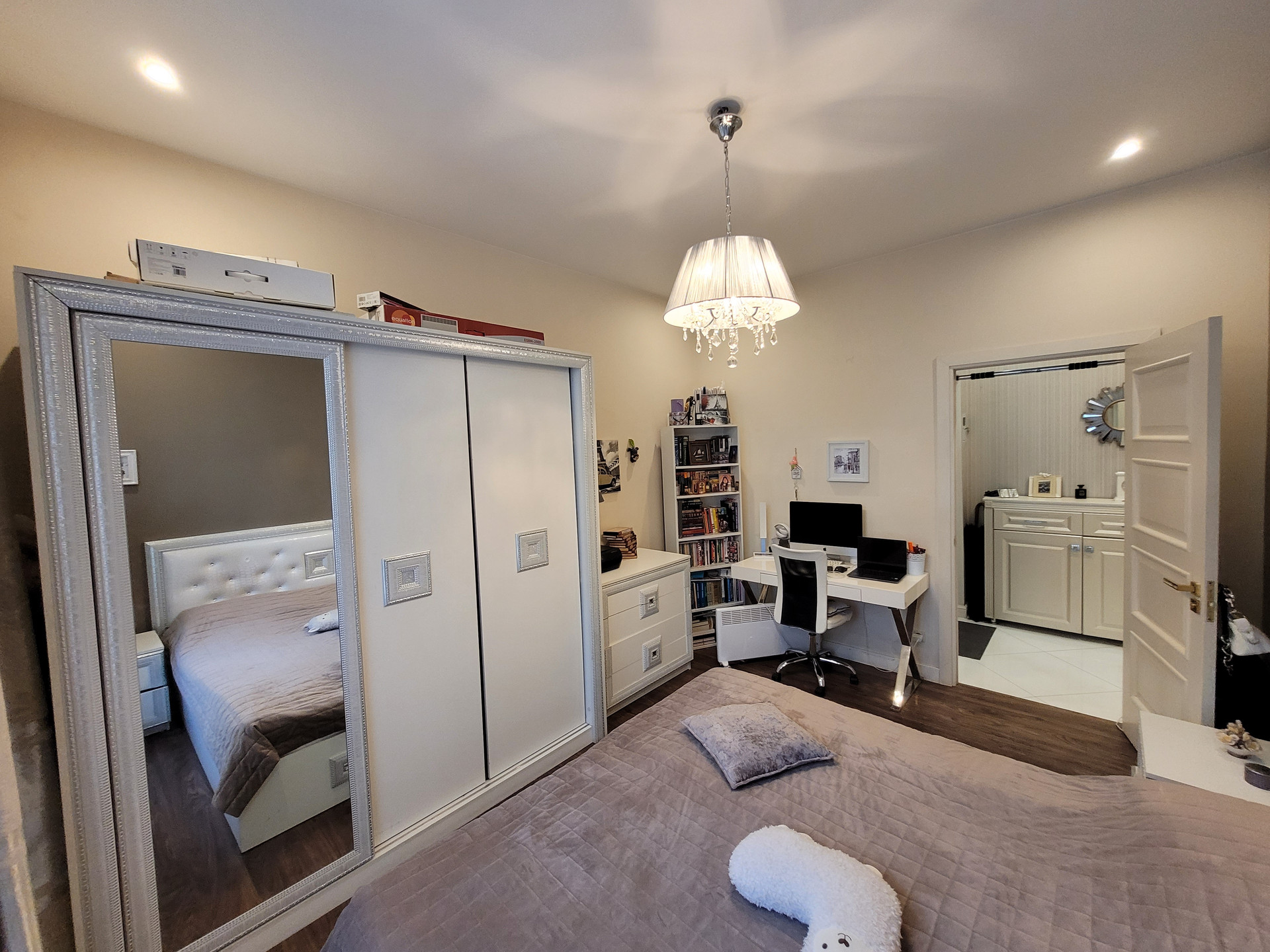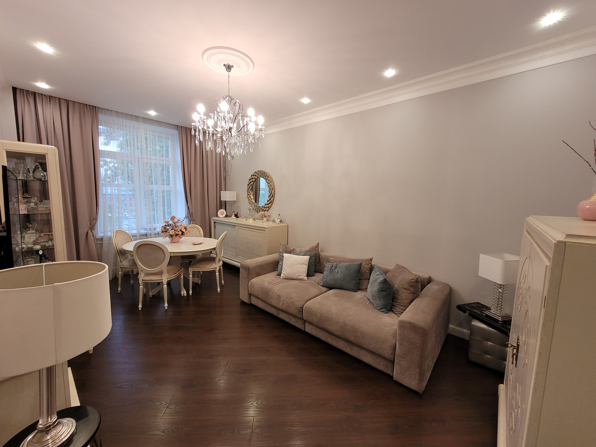 В квартире выполнен качественный евроремонт, проводка медная, изначально деревянный пол целиком заменён на новый деревянный поверх которого выполнена стяжка с выравниванием и последующей укладкой плитки и ламината, стены выровнены, окна финские деревянные, потолок гипсокартонный и натяжной.