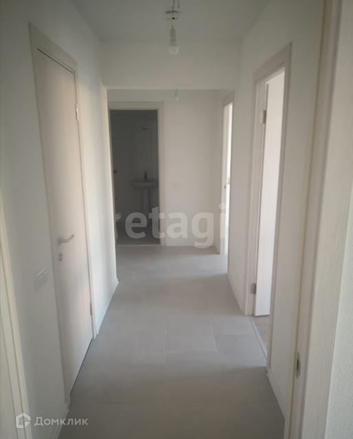 Качественный ремонт от застройщика, натяжные потолки, обои под покраску, светлый ламинат в жилых зонах и кафельная плитка в мокрых зонах.