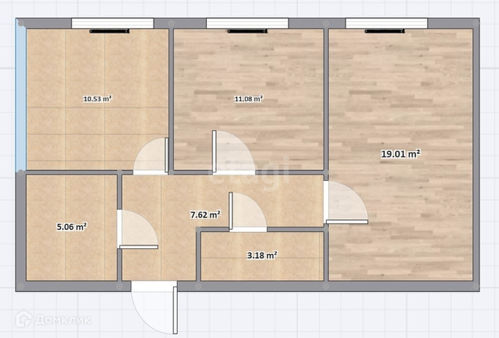 Общая площадь 54.8 м2