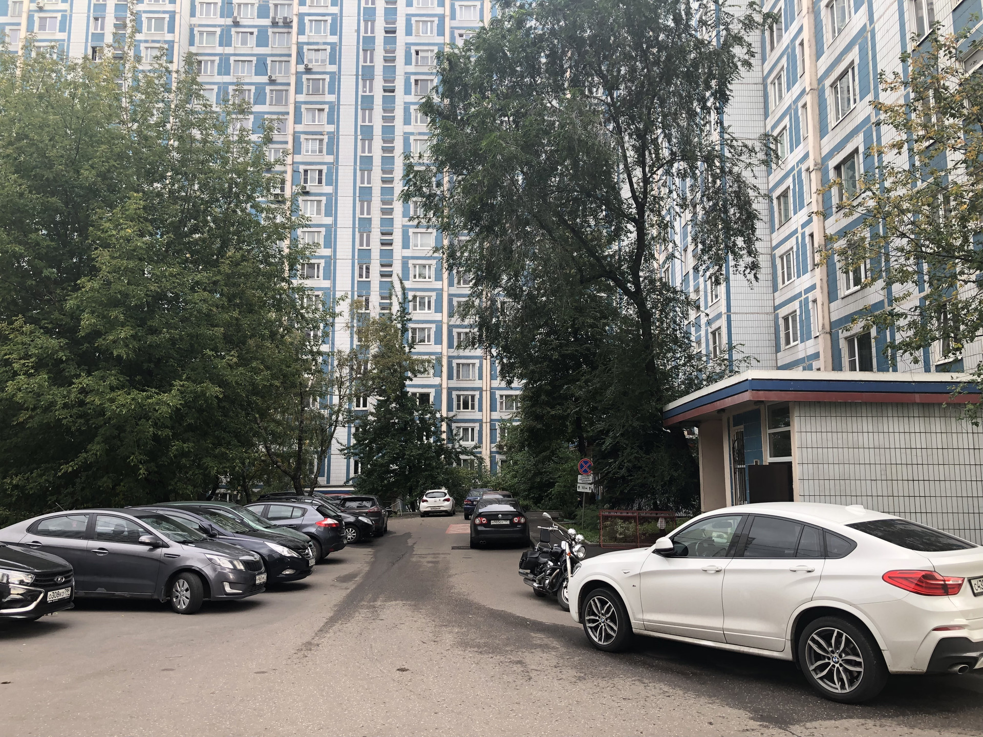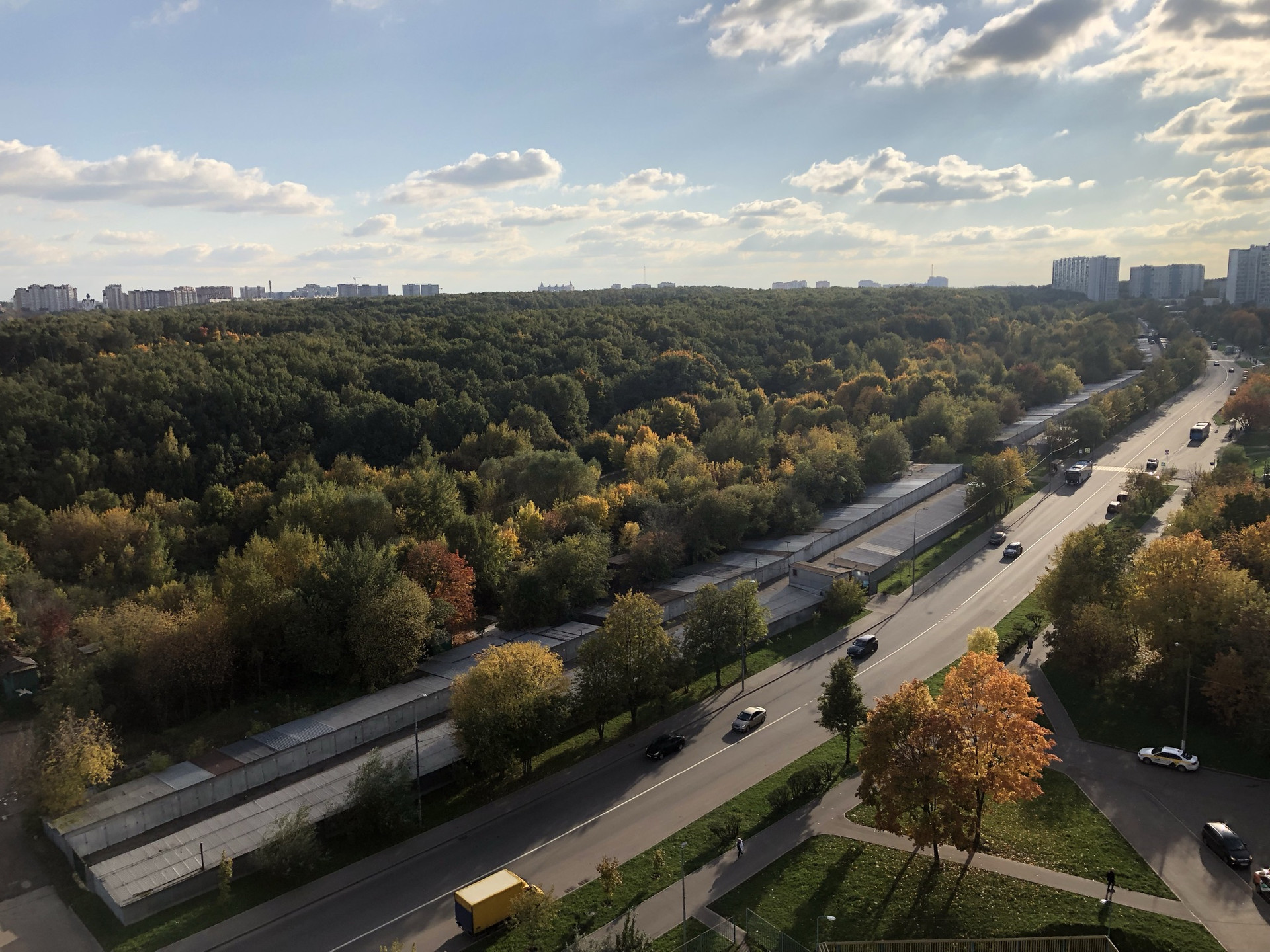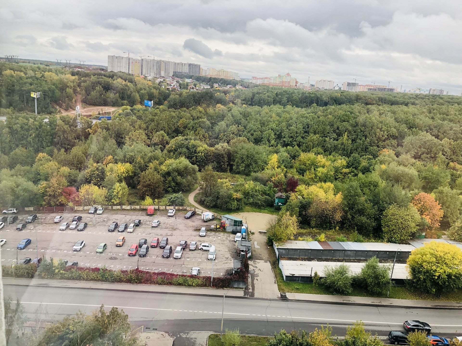 Через дорогу охраняемая автостоянка.