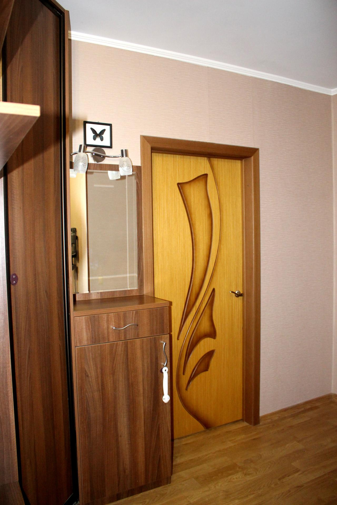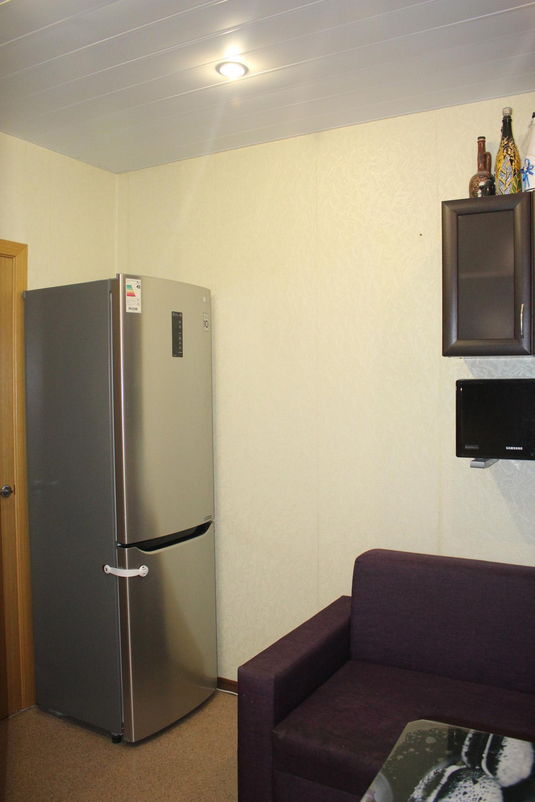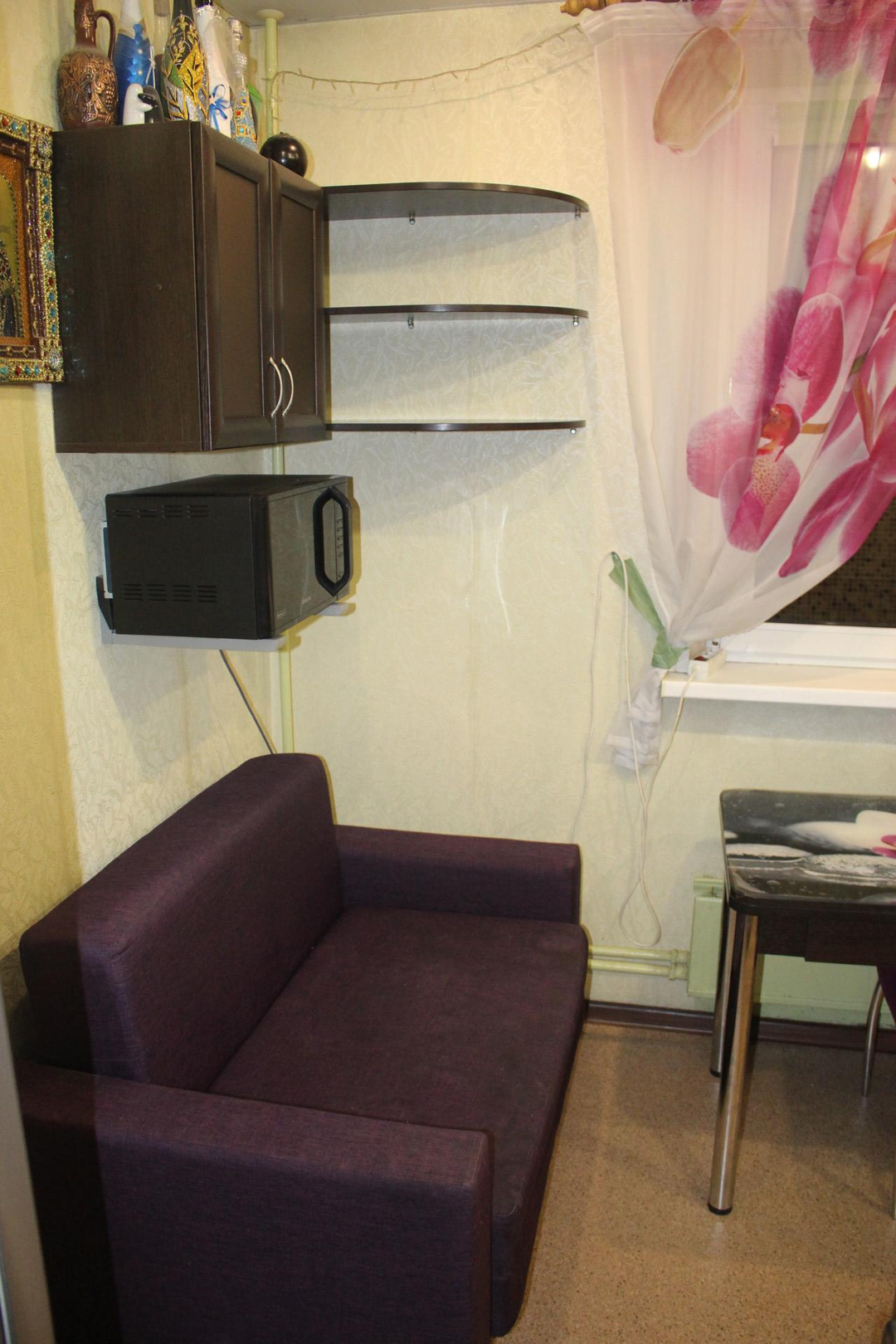 Косметический ремонт, пригодна для проживания. Кухонный гарнитур с плитой и духовкой, шкафы в прихожей и шкаф-купе в комнате остаются покупателю.