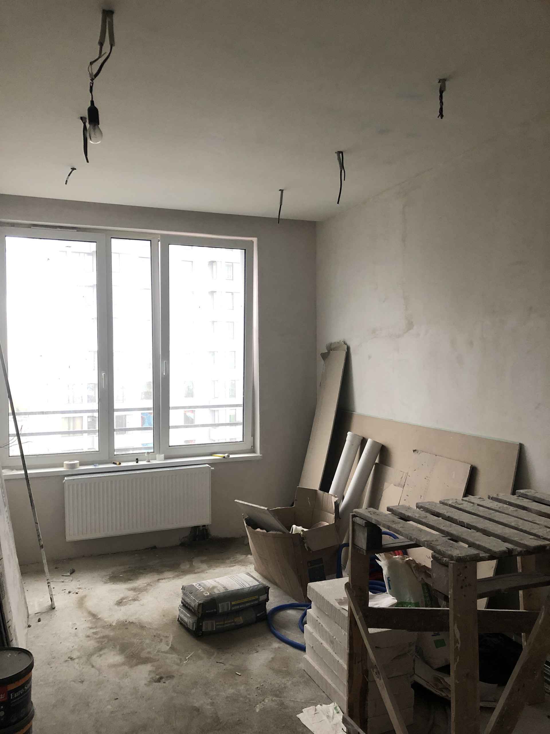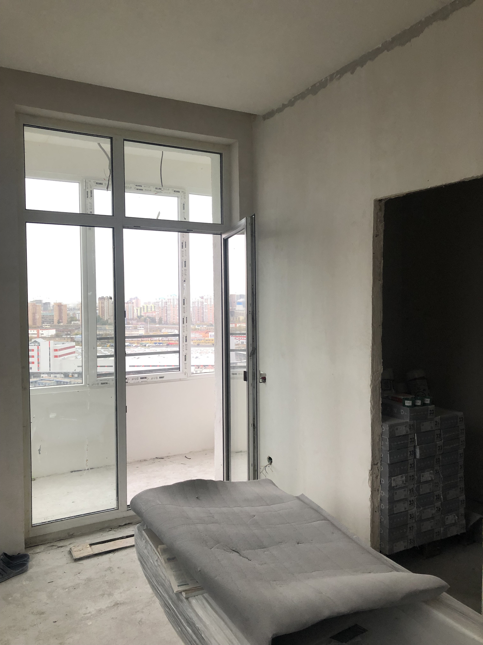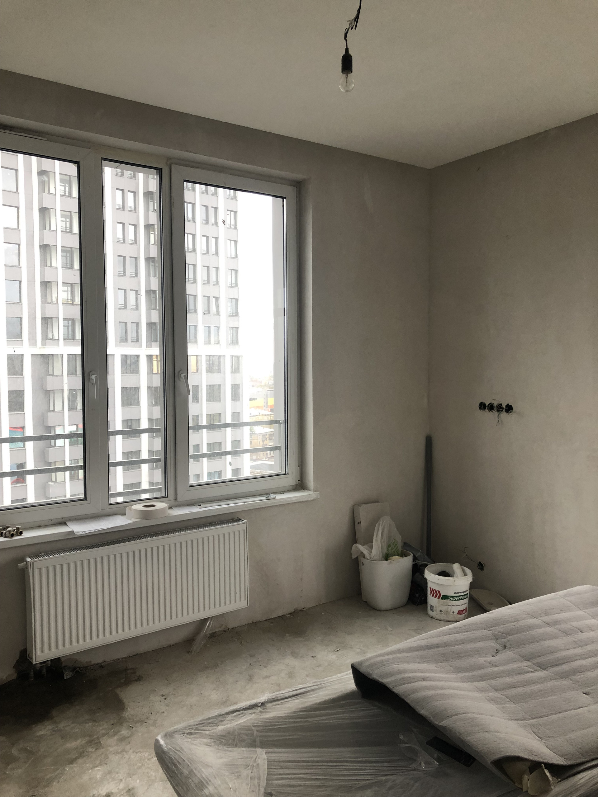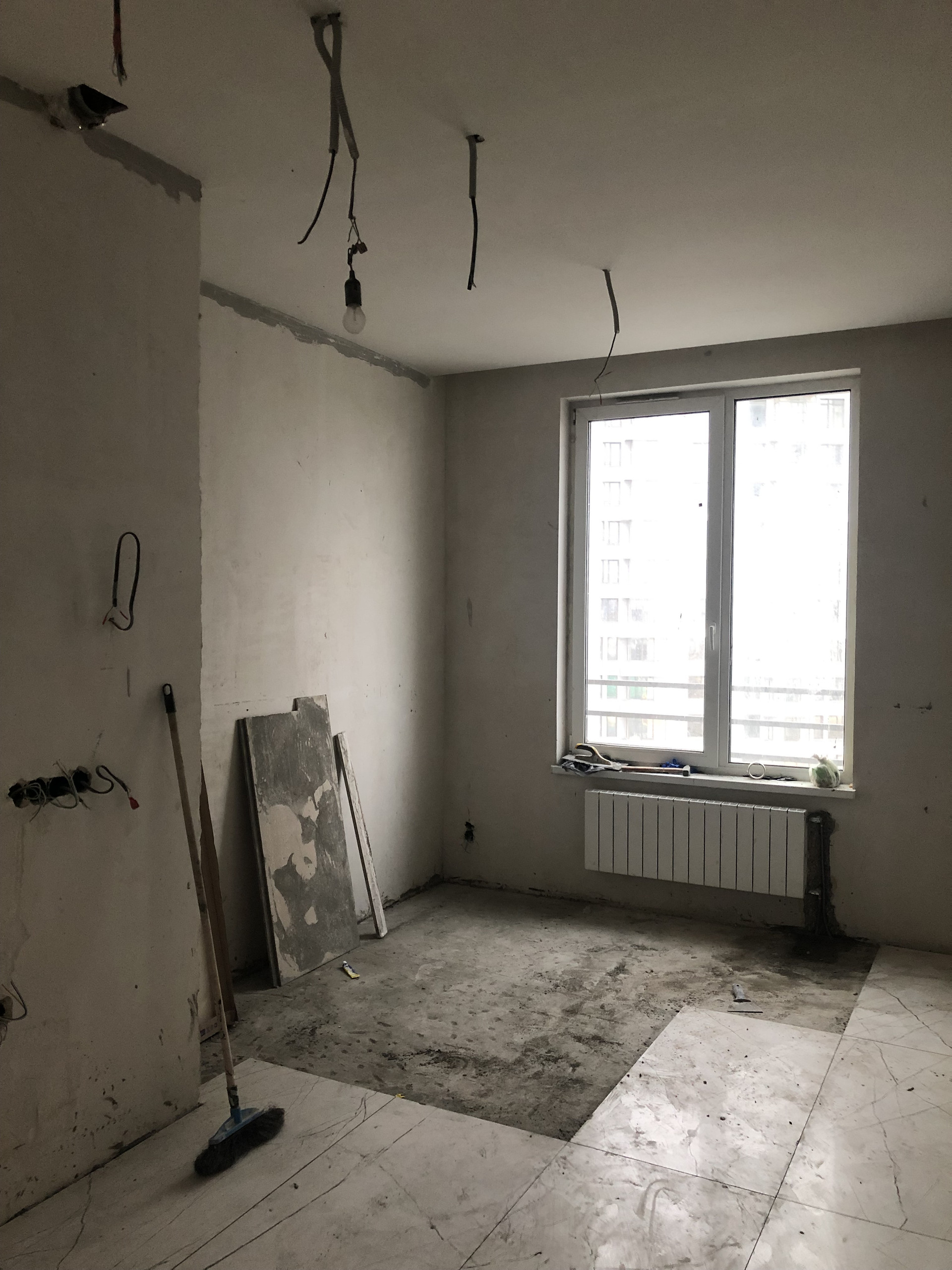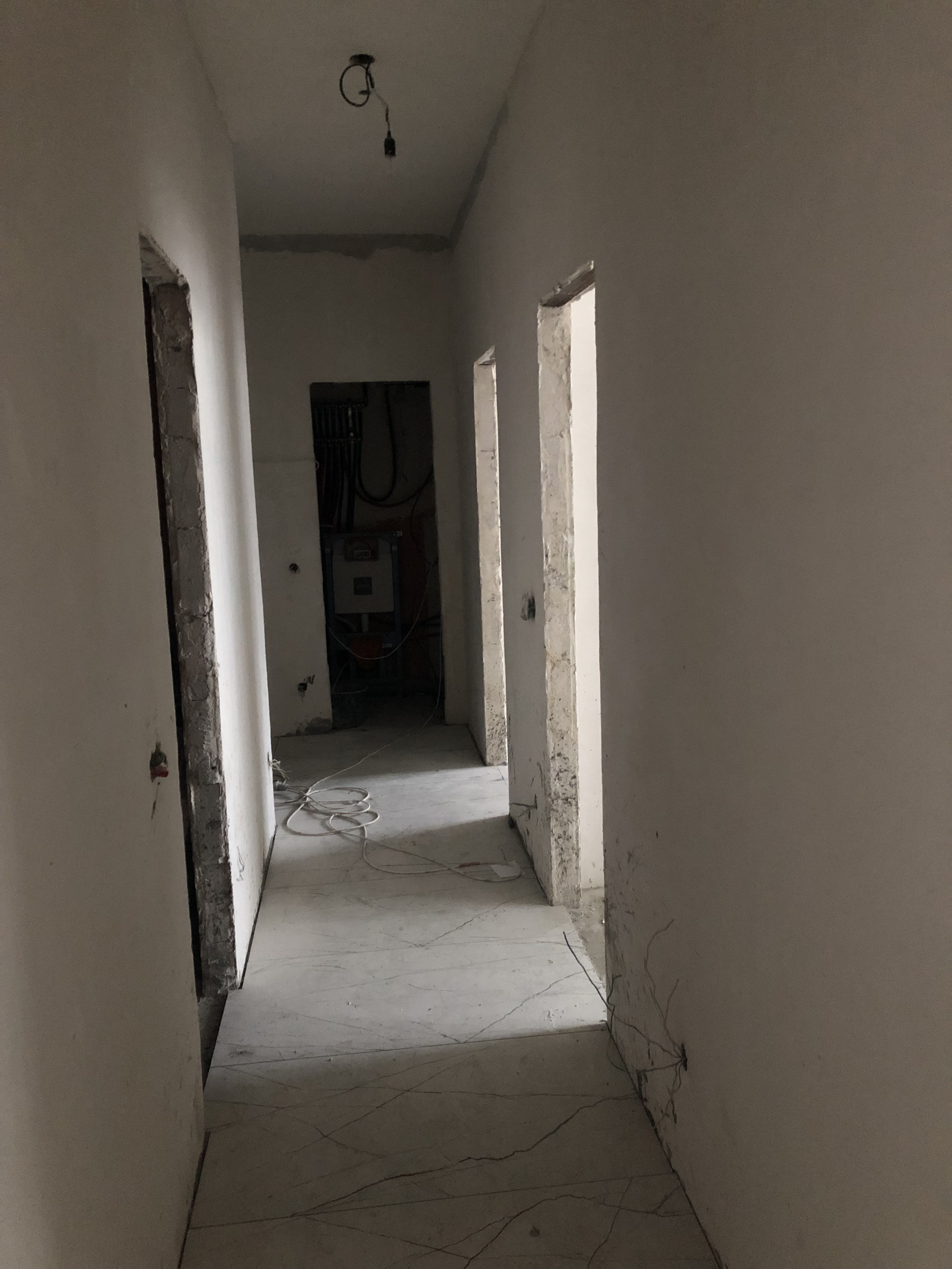 Квартира общей площадью 82,9 м. с 2 санузлами и балконом. Разделена на 3 комнаты. В квартире возведены и отштукатурены стены, залит пол, частично положена плитка на пол, раскинута электропроводка, разведены трубы подачи воды, разведены канализационные трубы, установлены радиаторы, в одном из санузлов установлена инсталляция. При ремонте использована сантехника и плитки Итальянского производства. При продаже остаются материалы для утепления балкона и частично для отделки (плитка ламинат).