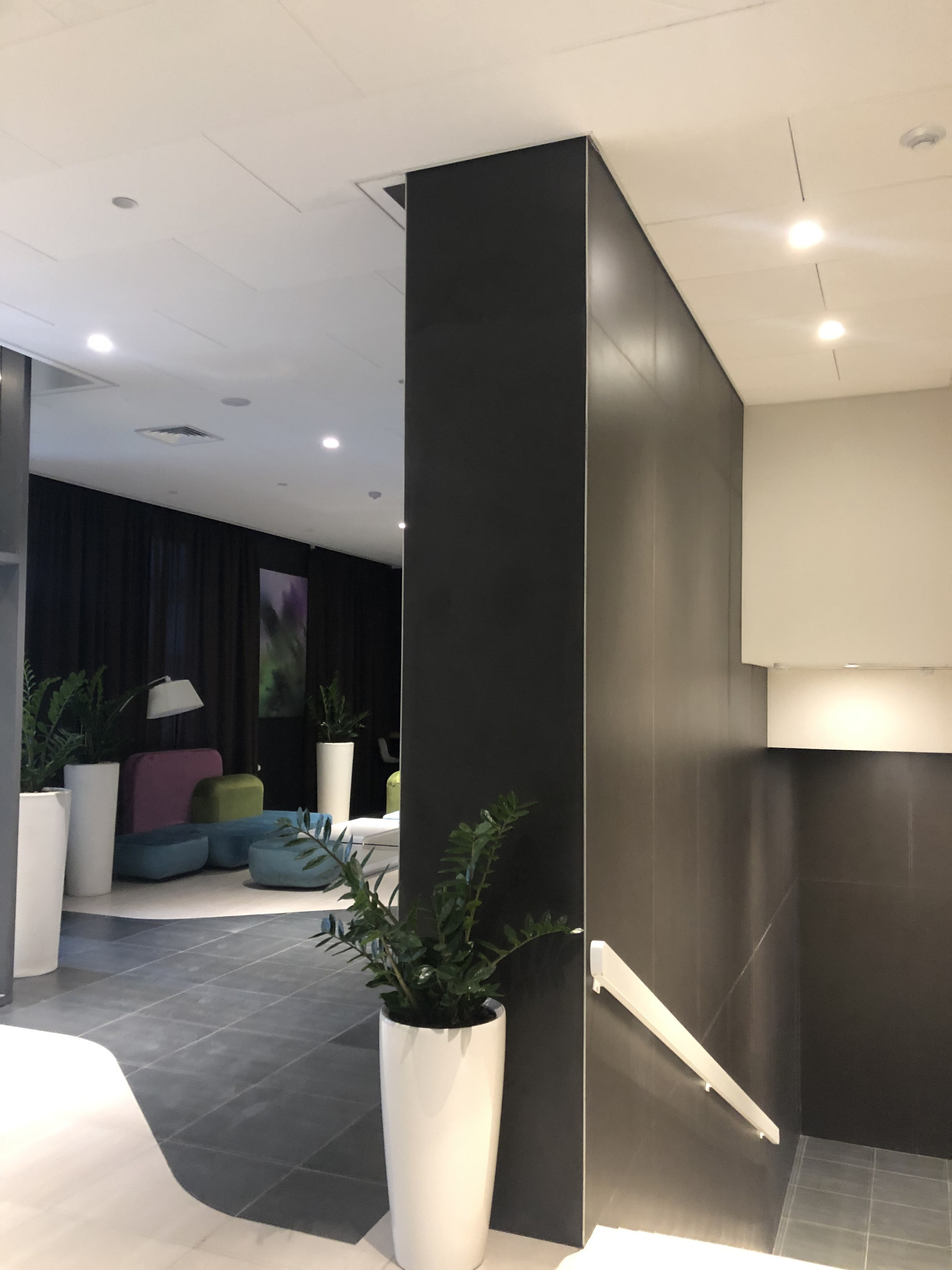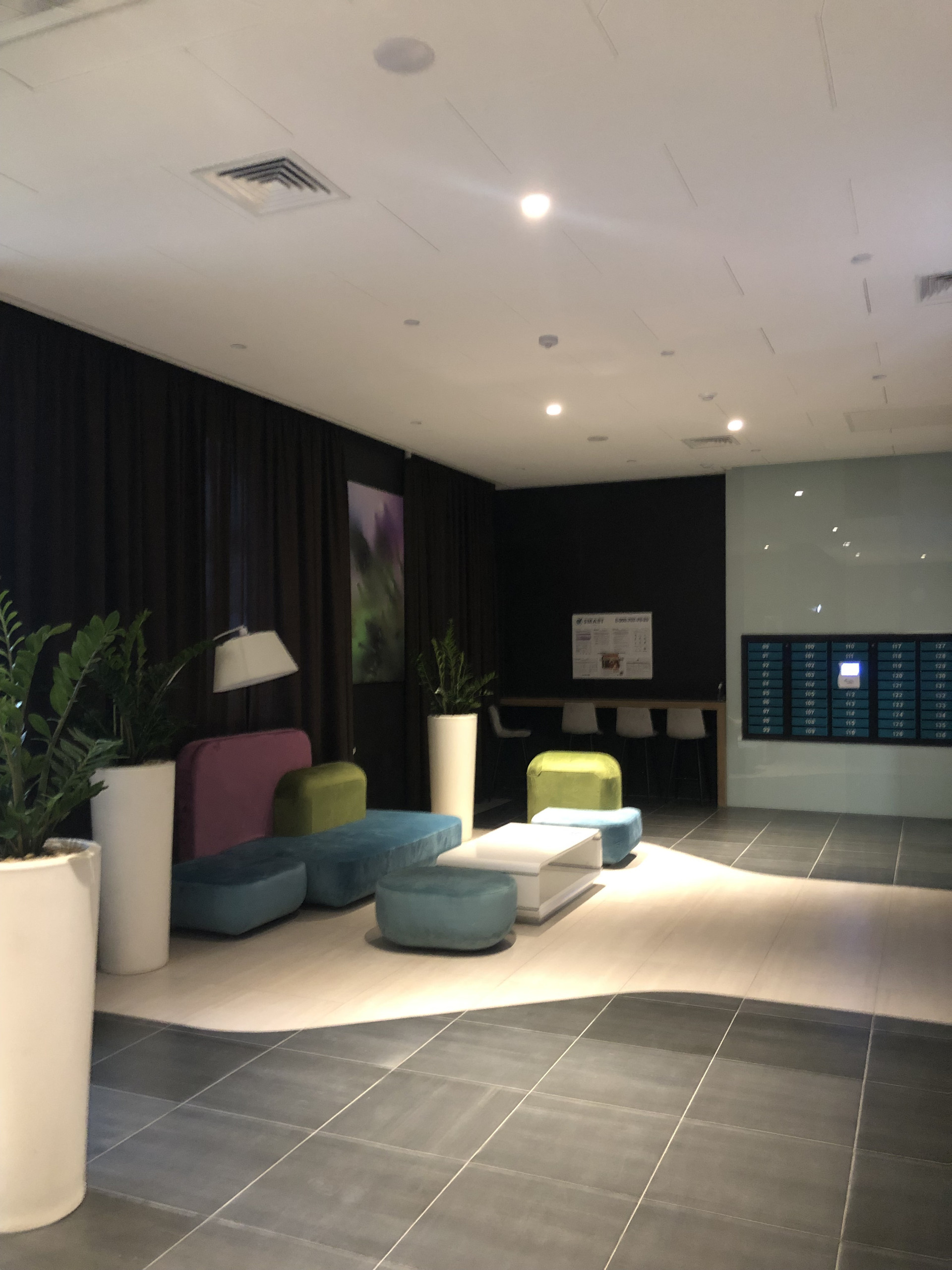 Просторные входные группы с высотой потолков до 5 м. Красивый холл с дизайнерской отделкой, стойка ресепшен и мини-гостиная для отдыха и переговоров(лобби)Охрана 24/7 и видеонаблюдение. Общедомовая приточная вент