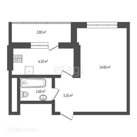 Площадь кухни 6.1 м2