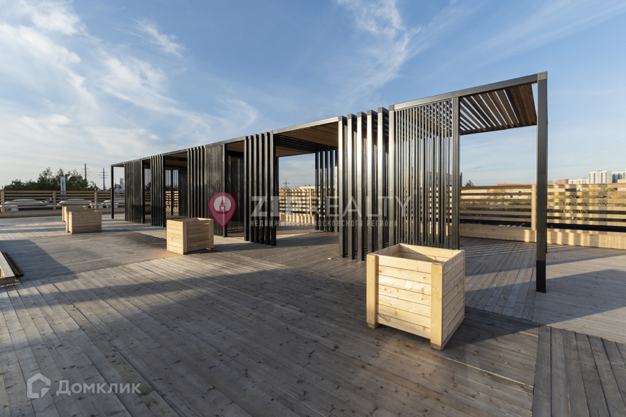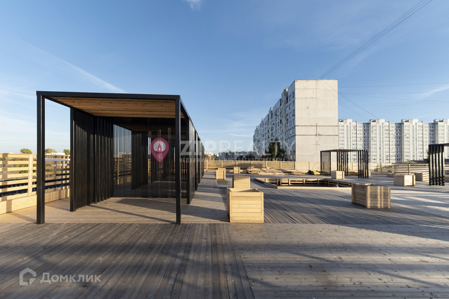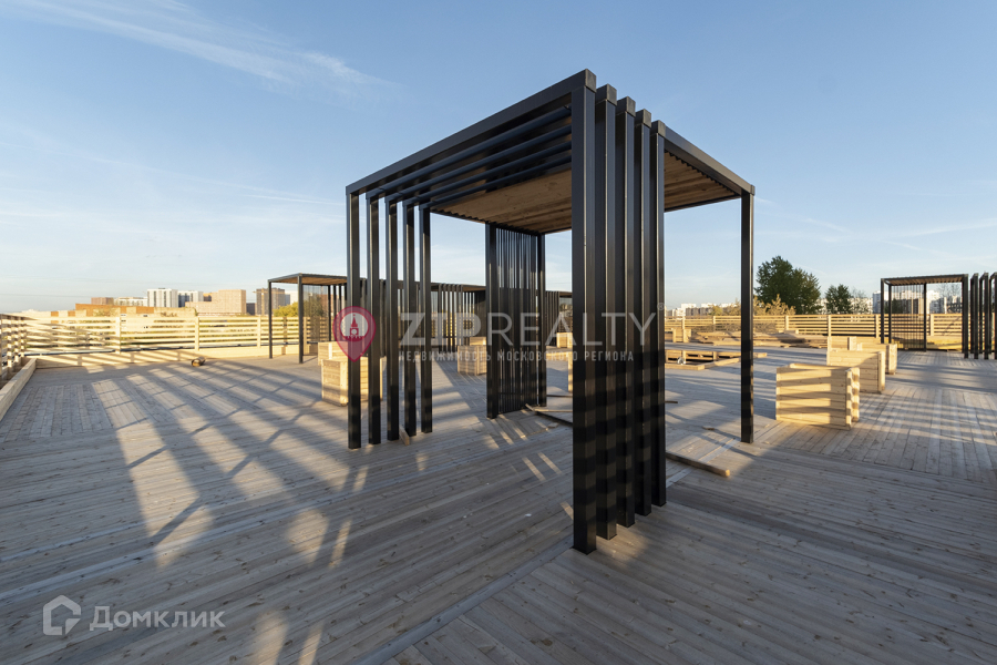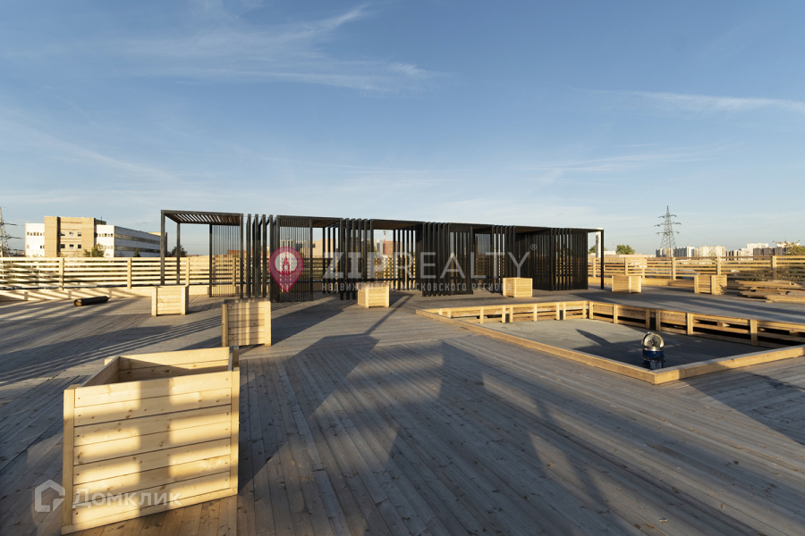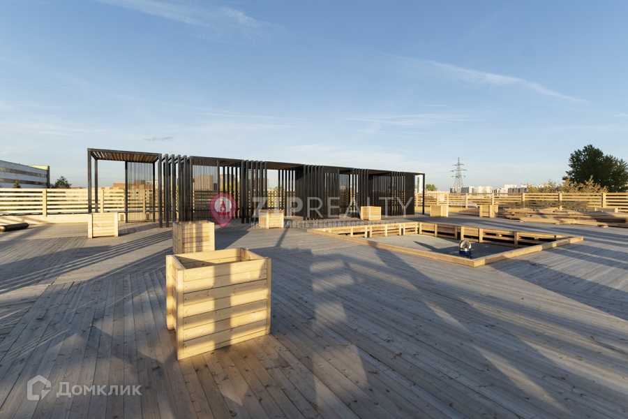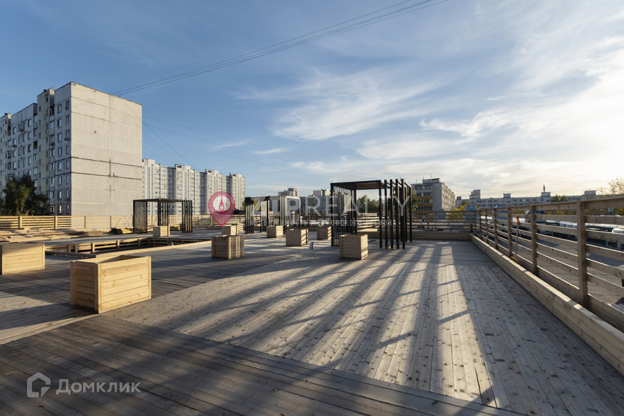 Выгодная интеграция в экосистему – все преимущества в виде ресторанов, рынка и прочего без явных минусов в виде шума благодаря акустическому барьеру. Вы сможете не выходя на улицу сходить за продуктами или провести время в кофейне. На крыше присутствует терраса, на которой  вы можете провести время с друзьями.