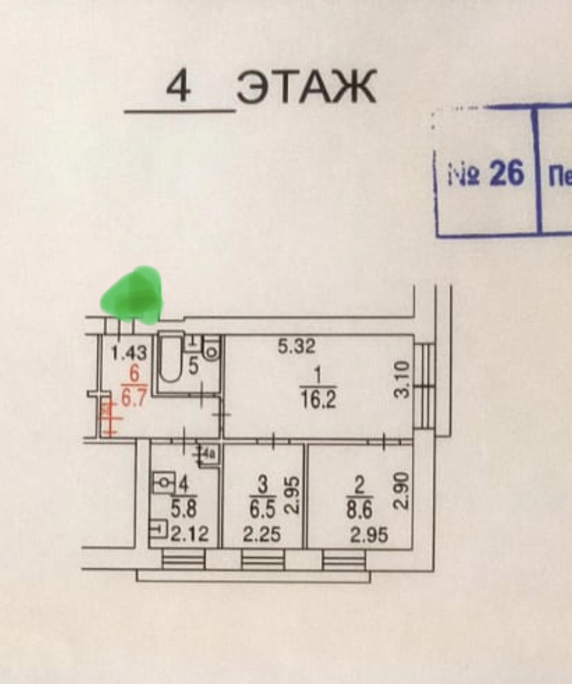 Площадь кухни 5.8 м2