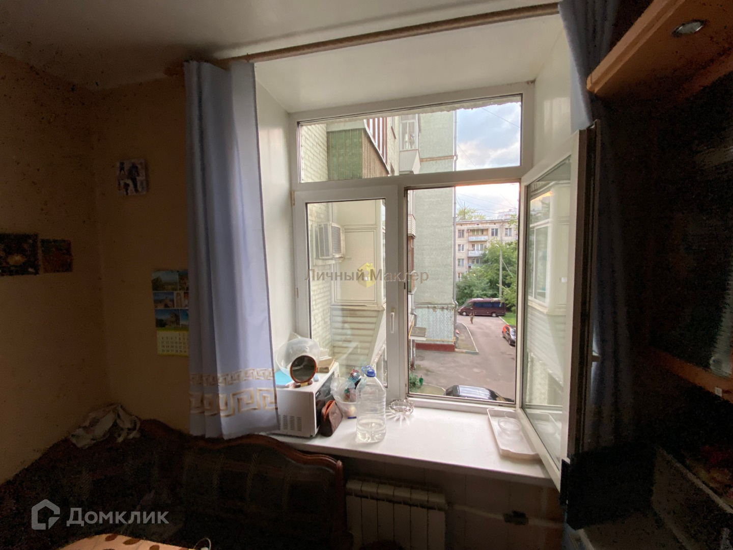 Окна во двор и на улицу.