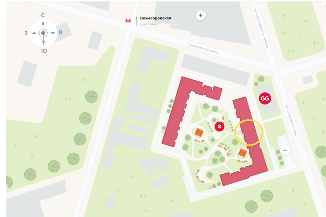Жилой комплекс расположен в 10 минутах пешком до метро Нижегородская.