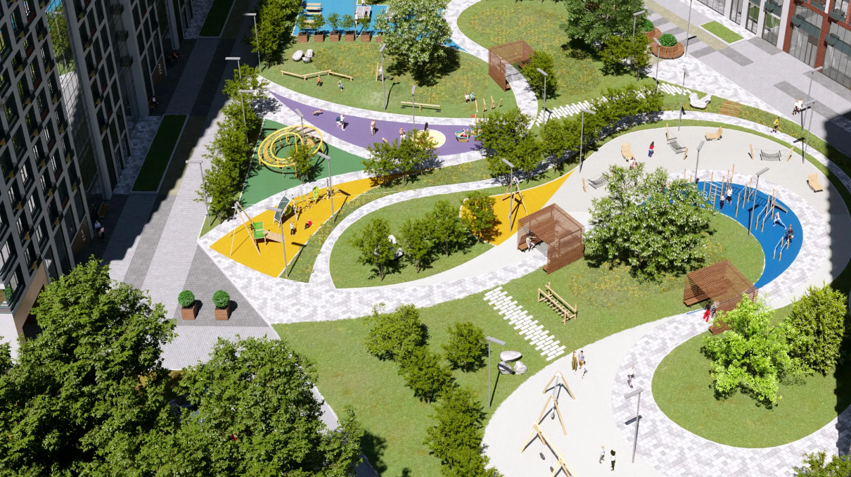 кинотеатры, парки, скверы. На территории ЖК будут оборудованы детские и