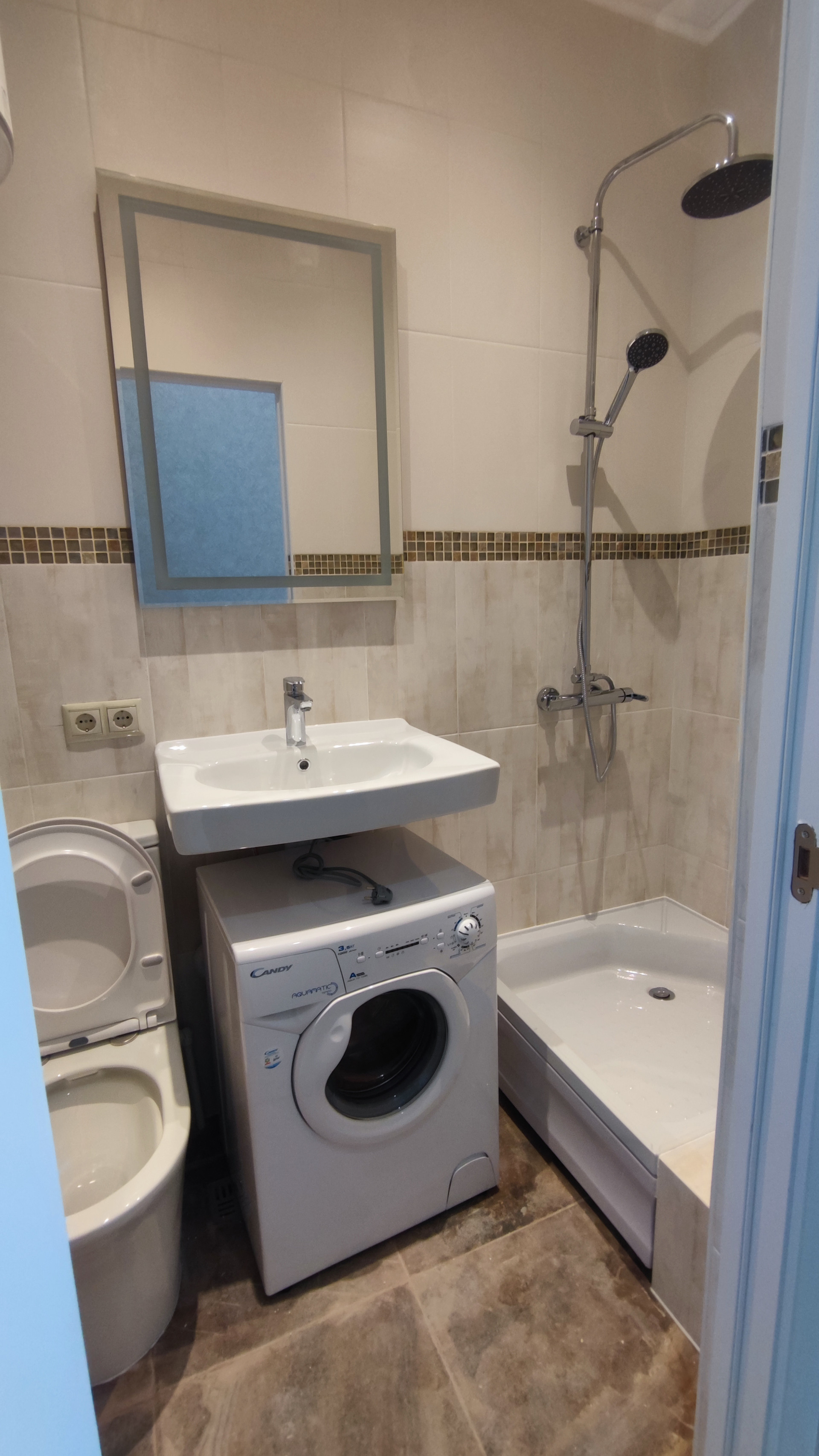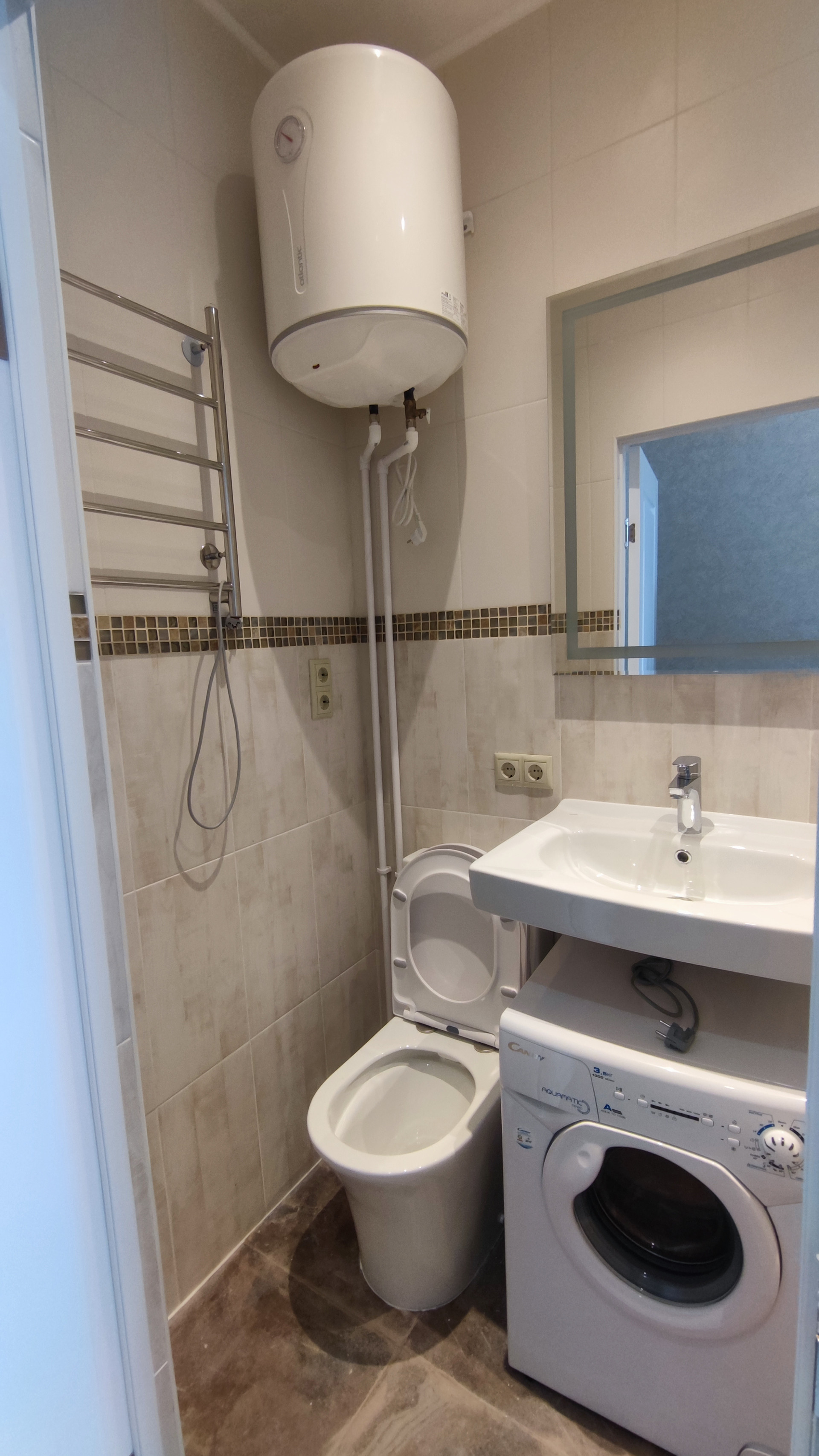 В санузле предусмотрены установка узкой стиральной машины.