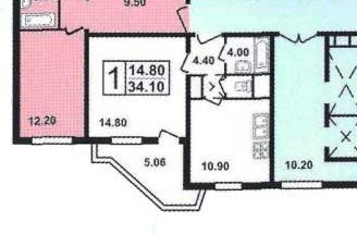 Жилая площадь 14.9 м2