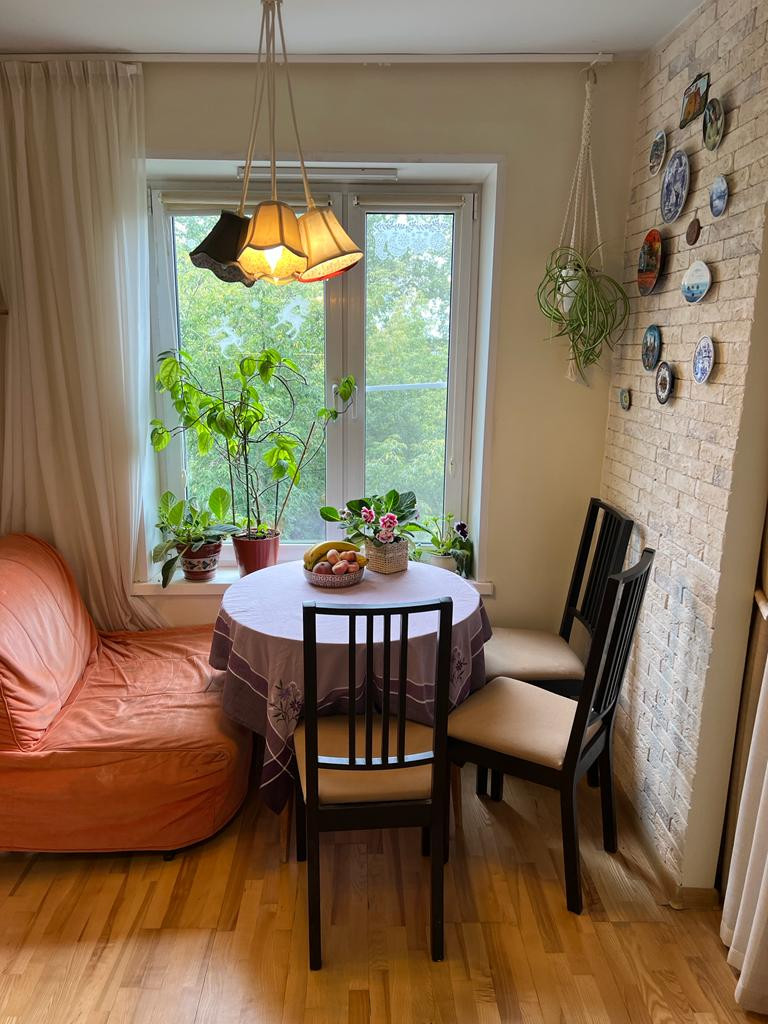 Продается отличная квартира с хорошим ремонтом. Можно оставить всю мебель на кухне, бытовую технику, что-то из мебели в комнате. Просторная большая комната с кондиционером. Тихий, зелёный двор. Развитая инфраструктура, рядом магазины, школы, метро.