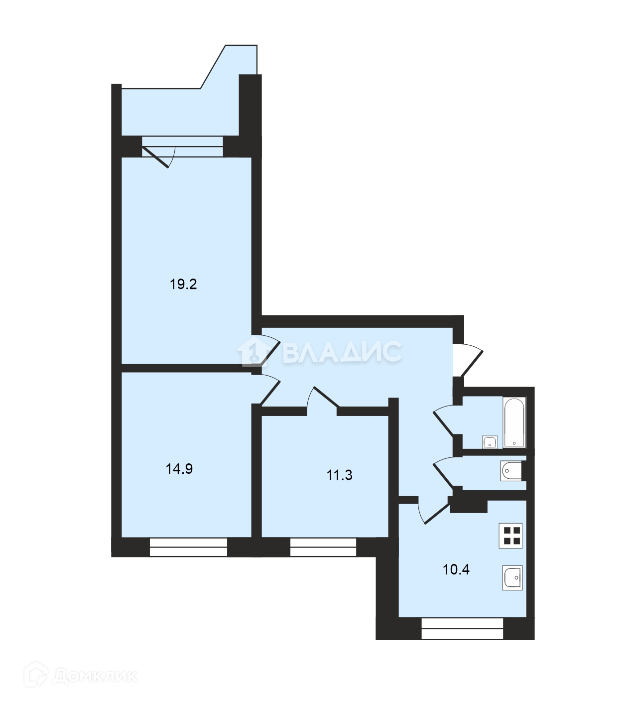 Общая площадь 77.6 м2