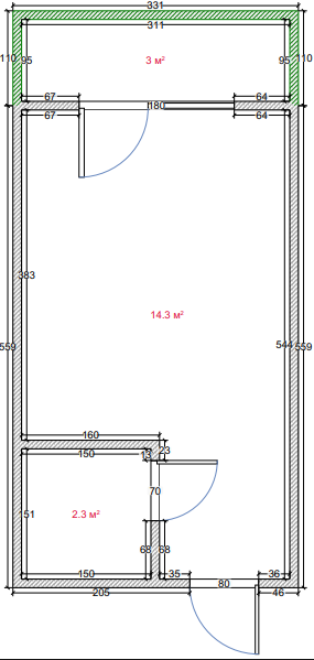 Общая площадь 19.8 м2