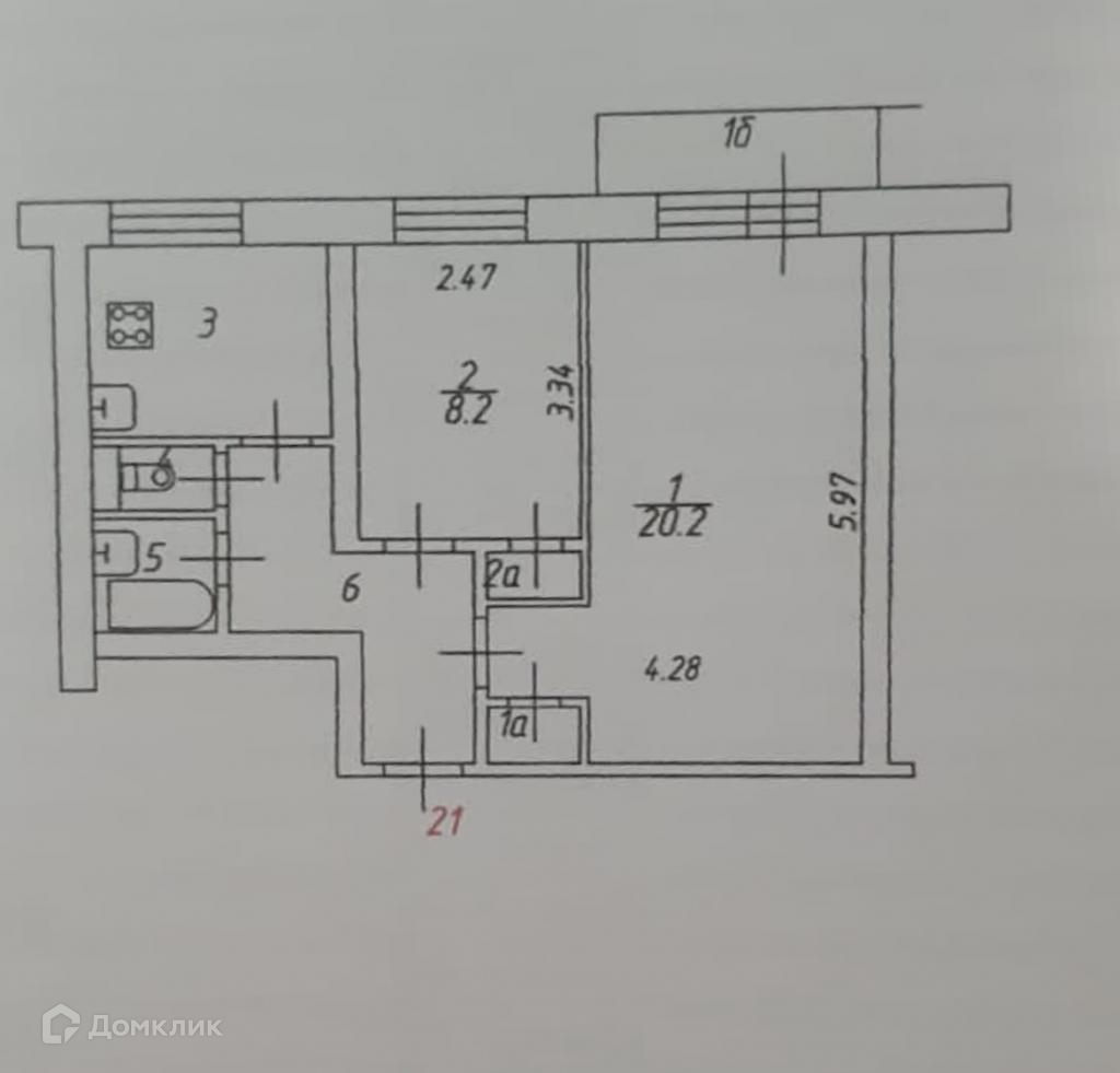 Балкон, лоджия 1 балкон