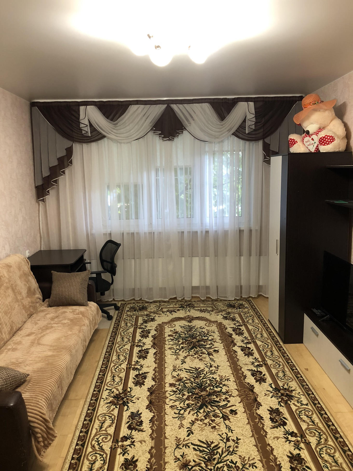 Ремонт свежий: новые окна Рехау, натяжные потолки, есть решётки, новая кухня, в коридоре и кухне новый качественный немецкий ламинат, в комнате паркет. Квартира чистая, без запахов, квартира никогда не сдавалась. Мебель остаётся будущим собственникам.