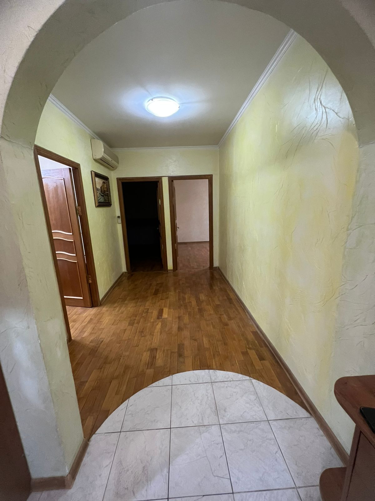 Встроенная кухня с гарнитуром, посудомоечной машиной и новый холодильник, стиральная машина, 2 телевизора. Пол - дубовый паркет во всех комнатах, в с/у плитка. Встроенный шкаф, итальянская мебель. Кондиционер на большую площадь с режимом обогрева. Лоджия застеклена и утеплена.