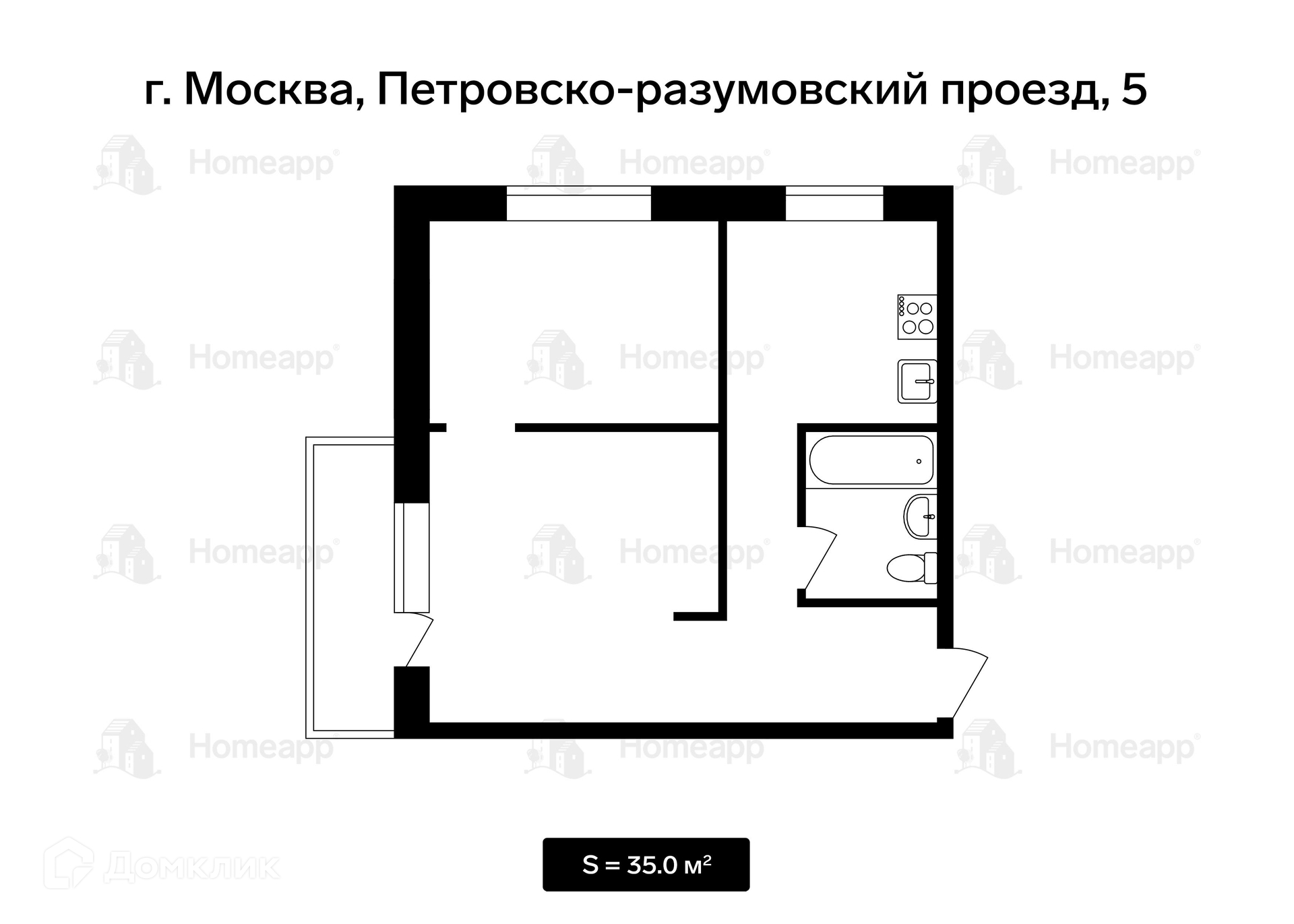 2-комнатная квартира, 34.8 м2, этаж 4 / 10, на продажу в Москве, Петровско-Разумовский проезд, 5