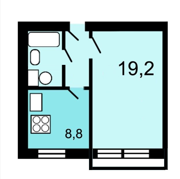Жилая площадь 19.7 м2