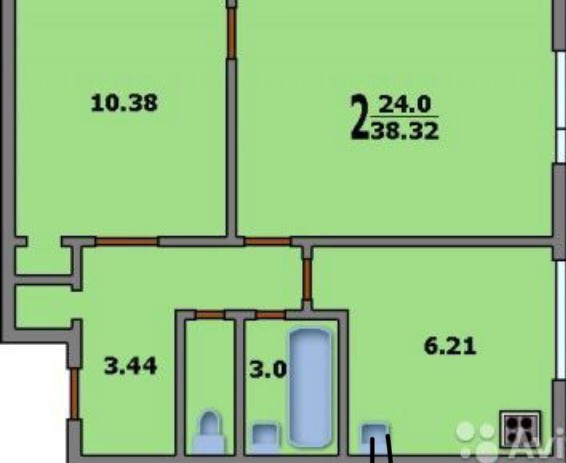 Общая площадь 38 м2