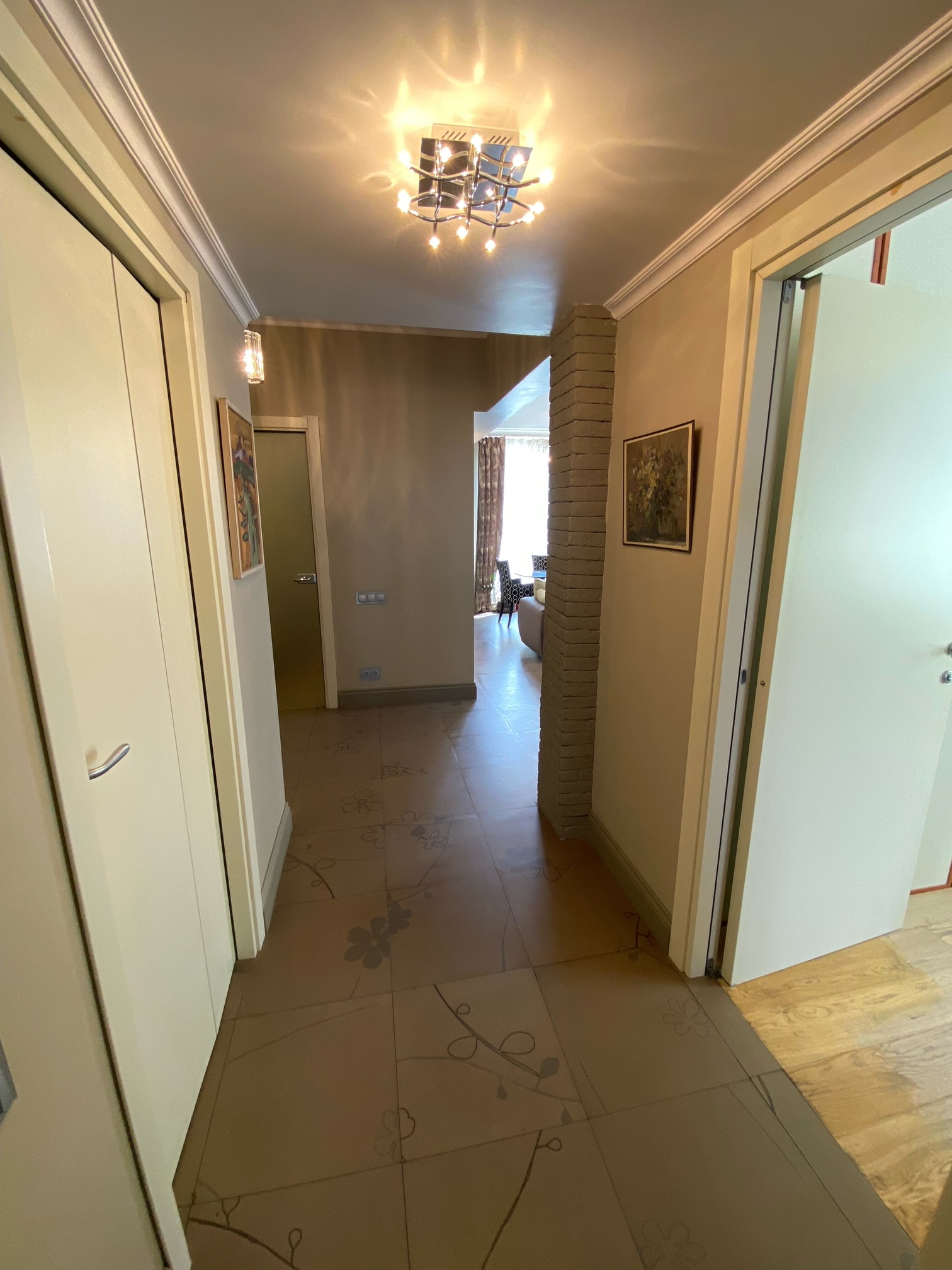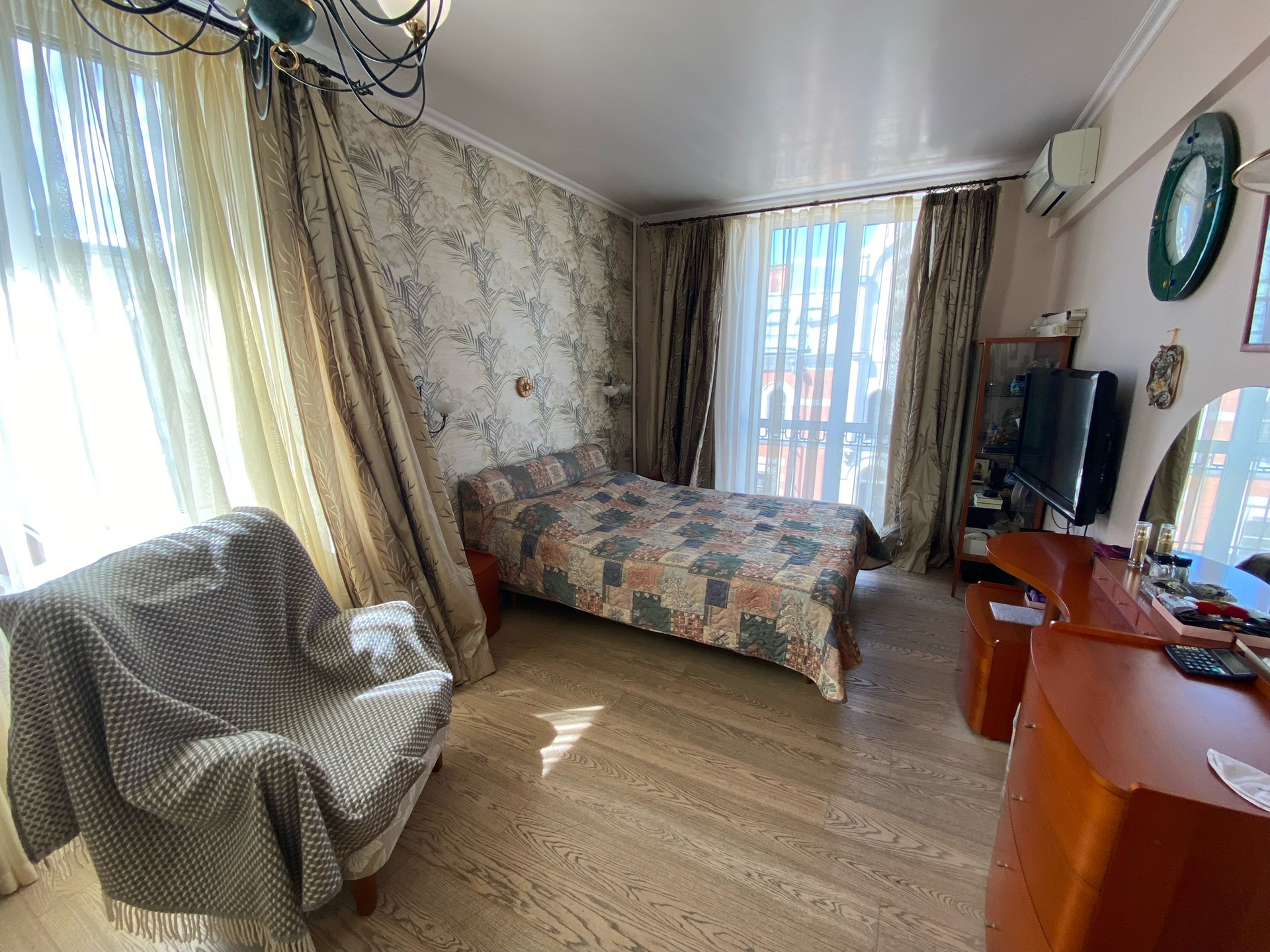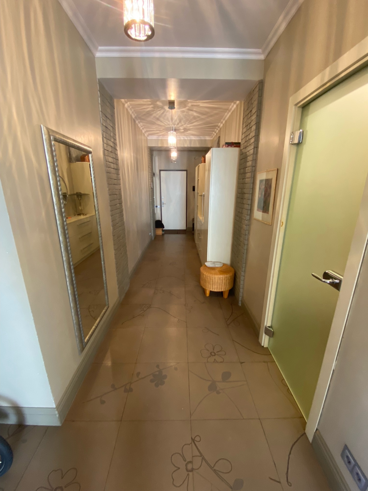 В квартире выполнен дизайнерский ремонт по проекту с использованием импортных материалов. Планировка-распашонка (окна на 2 стороны), панорамное остекление. Кухня-гостиная 30,5 кв.м., кабинет, спальня, гардеробная, постирочная, три балкона. Высота потолков 3 метра. Есть теплые полы, система фильтров воды, водонагреватель, 3 кондиционера, 3-х фазное электричество 15 Квт.