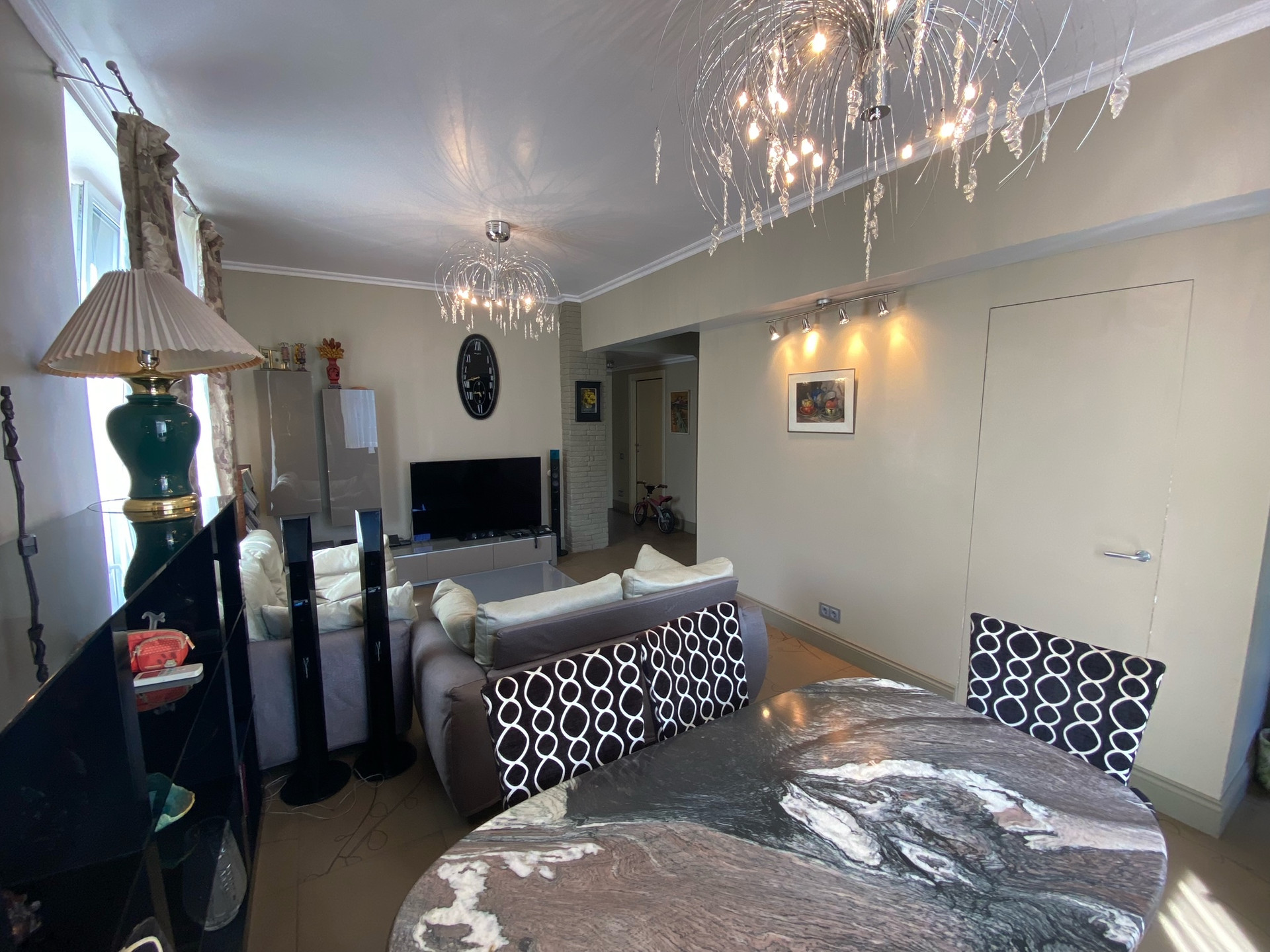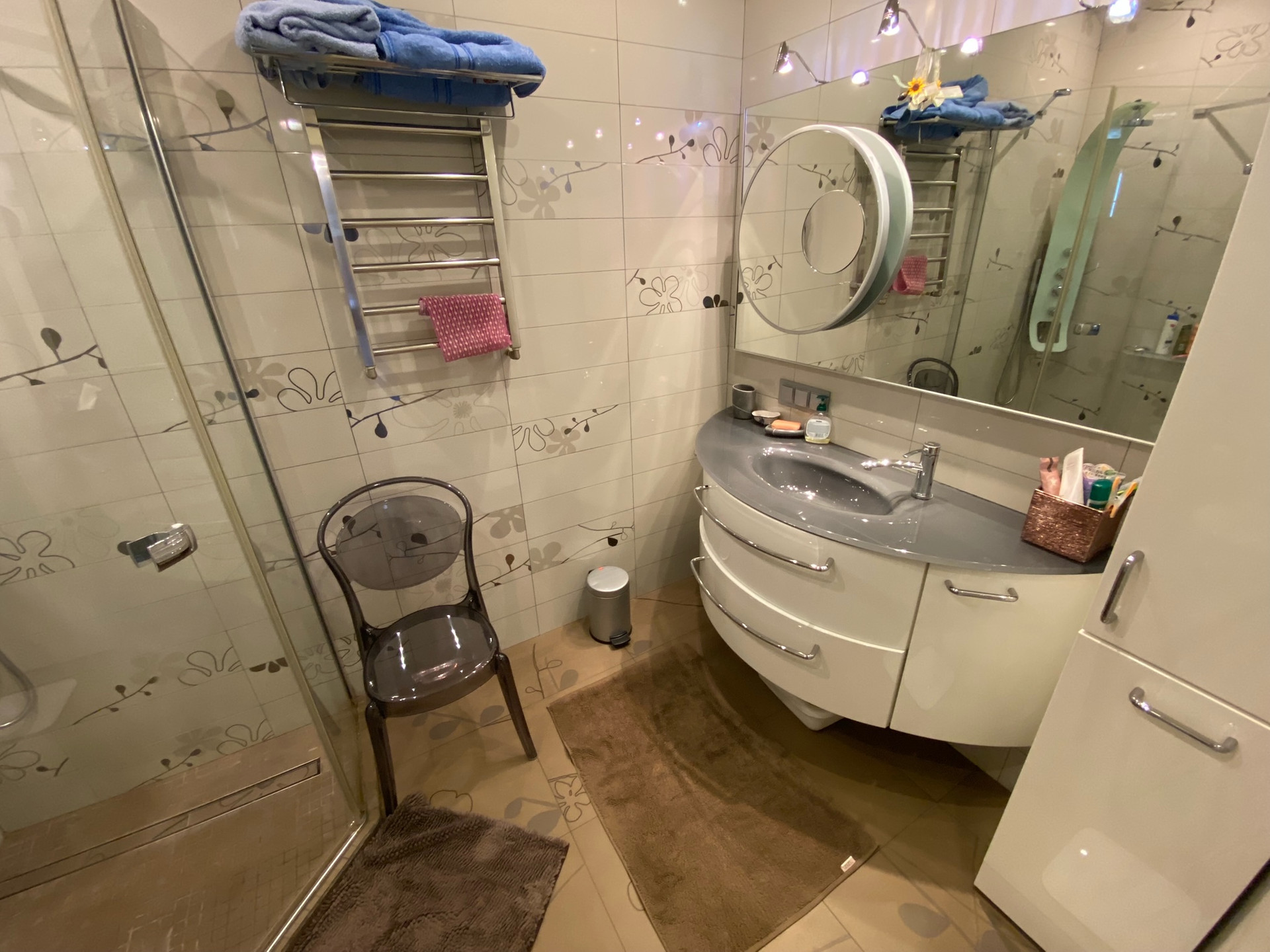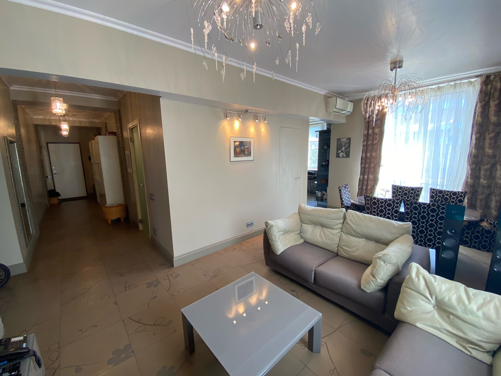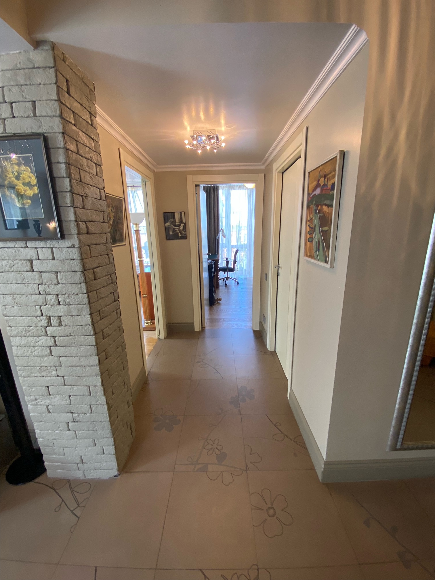 В квартире выполнен дизайнерский ремонт по проекту с использованием импортных материалов. Планировка-распашонка (окна на 2 стороны), панорамное остекление. Кухня-гостиная 30,5 кв.м., кабинет, спальня, гардеробная, постирочная, три балкона. Высота потолков 3 метра. Есть теплые полы, система фильтров воды, водонагреватель, 3 кондиционера, 3-х фазное электричество 15 Квт.