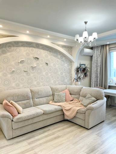 Квартира с дизайнерским ремонтом, качественной отделкой - полы: керамическая плитка/ламинат; стены: обои;