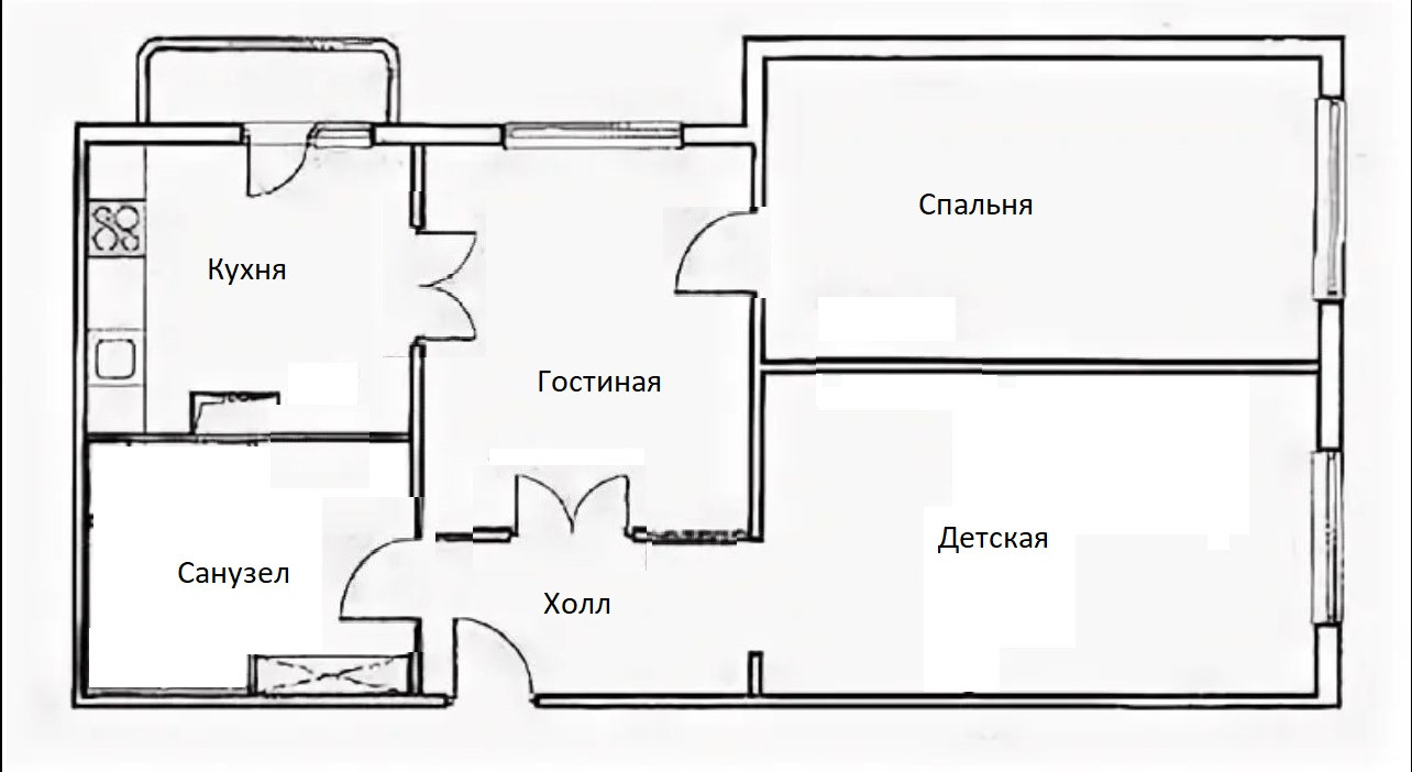 Жилая площадь 52 м2
