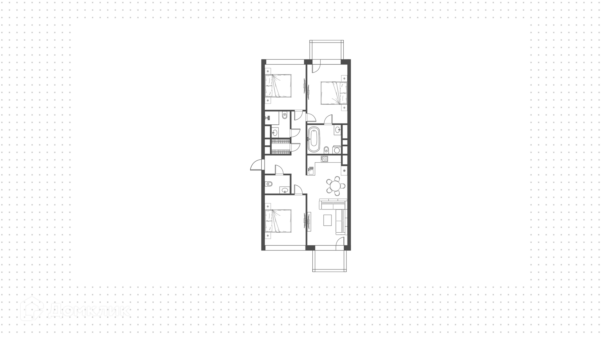 ID 184 409. Квартира с 3-мя спальнями общей площадью 102 м² в премиум-квартале Jazz. Квартира без отделки расположена на 6 этаже в корпусе Ray. Свободная планировка без несущих стен и колонн, предусмотрена большая кухня-гостиная, гардеробная комната, два санузла.