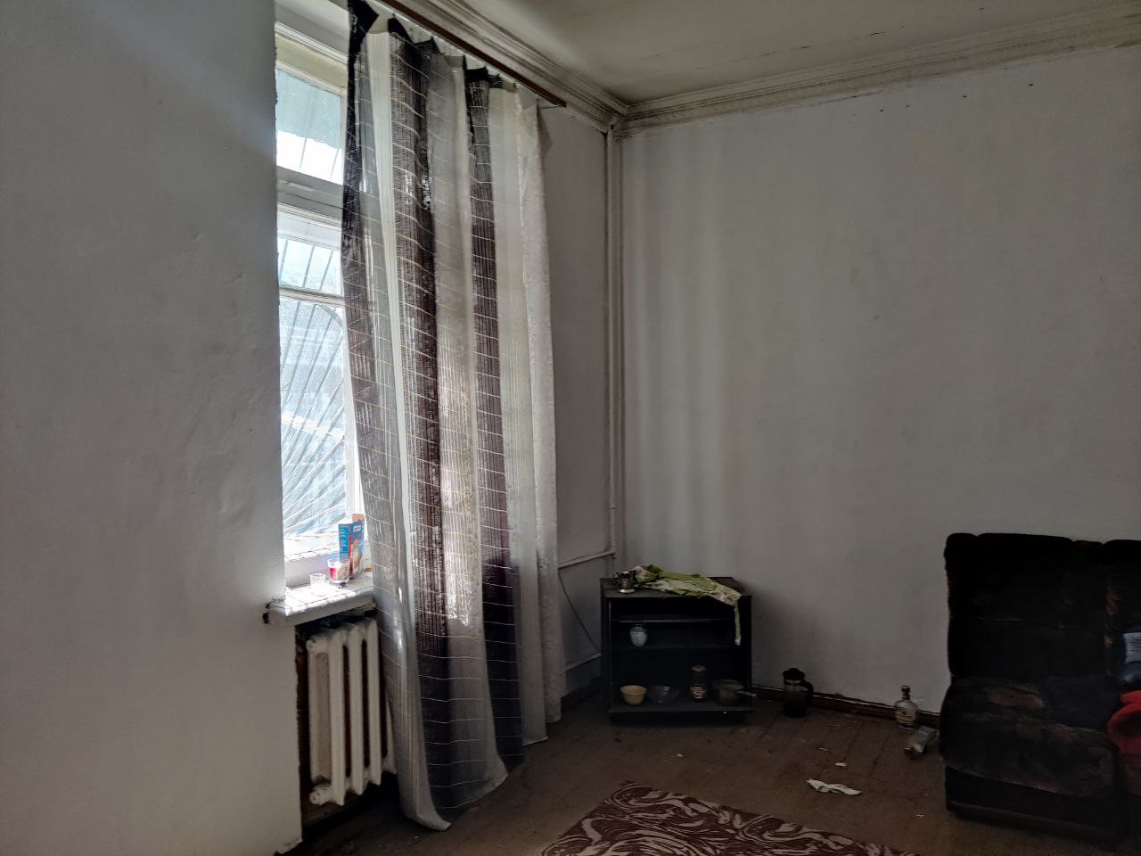 Высокий потолок -3,1 м. Два деревянных окна