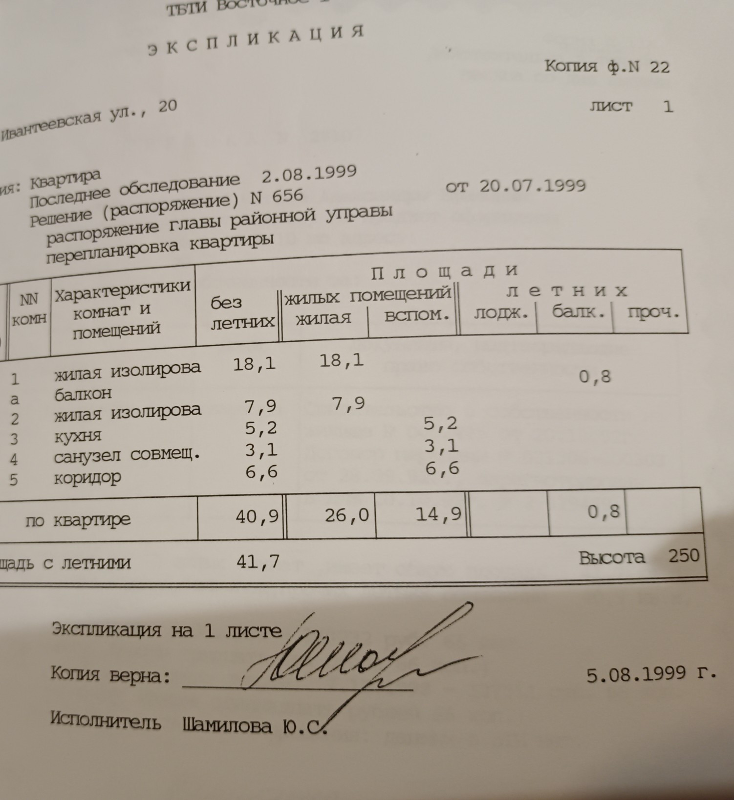 Общая площадь 41.7 м2