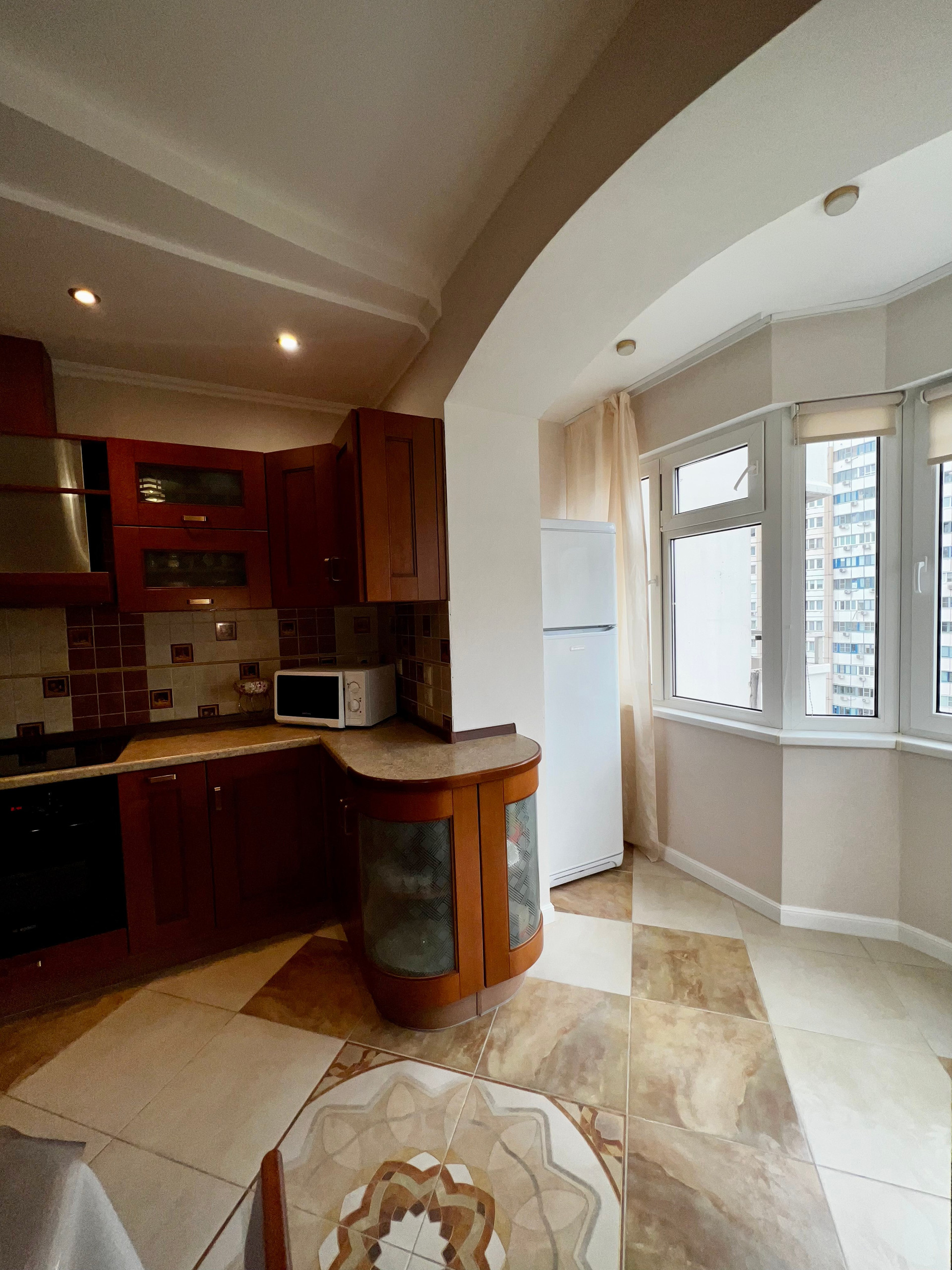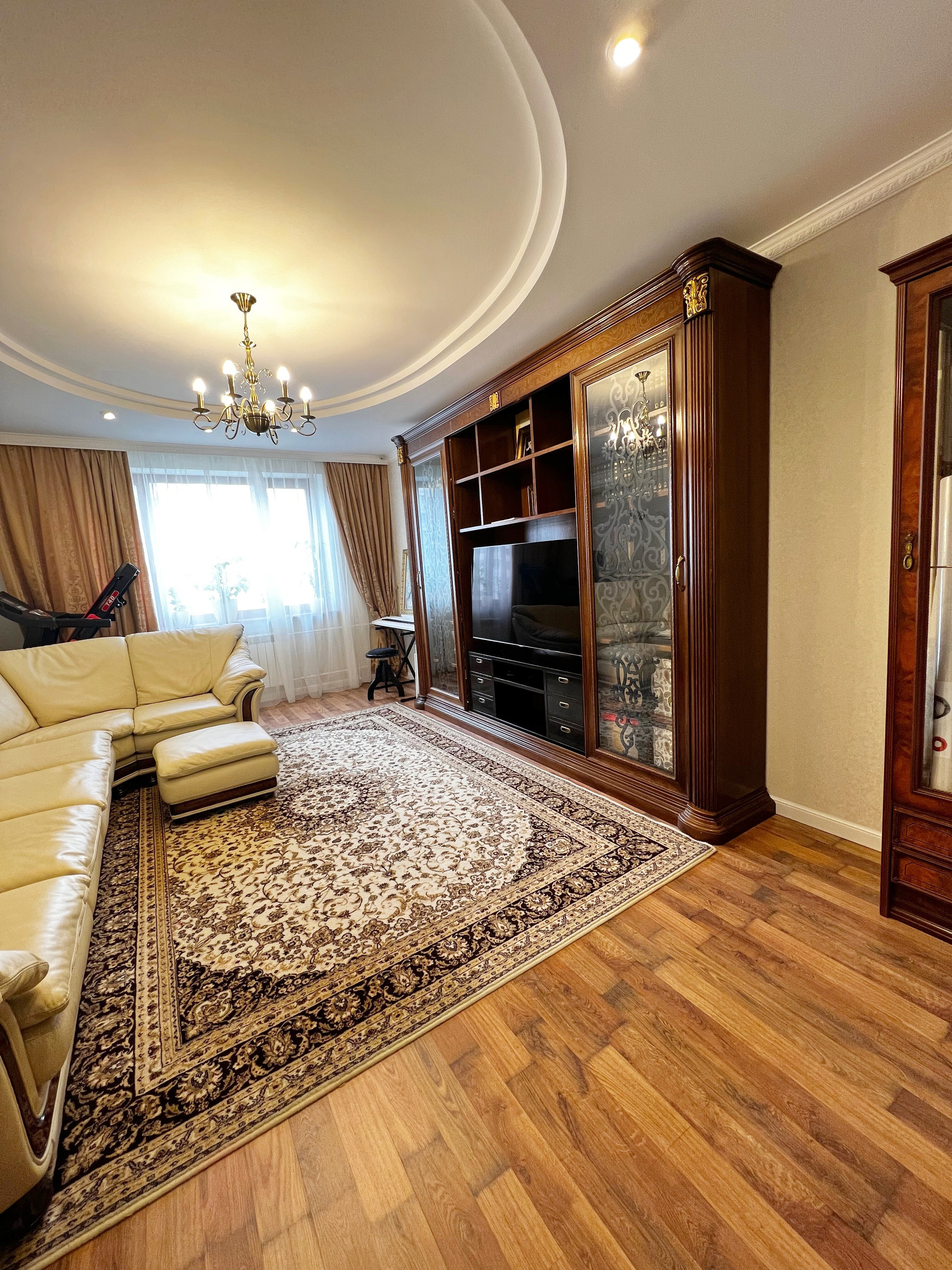 Просторные комнаты, огромная кухня, широкий коридор.