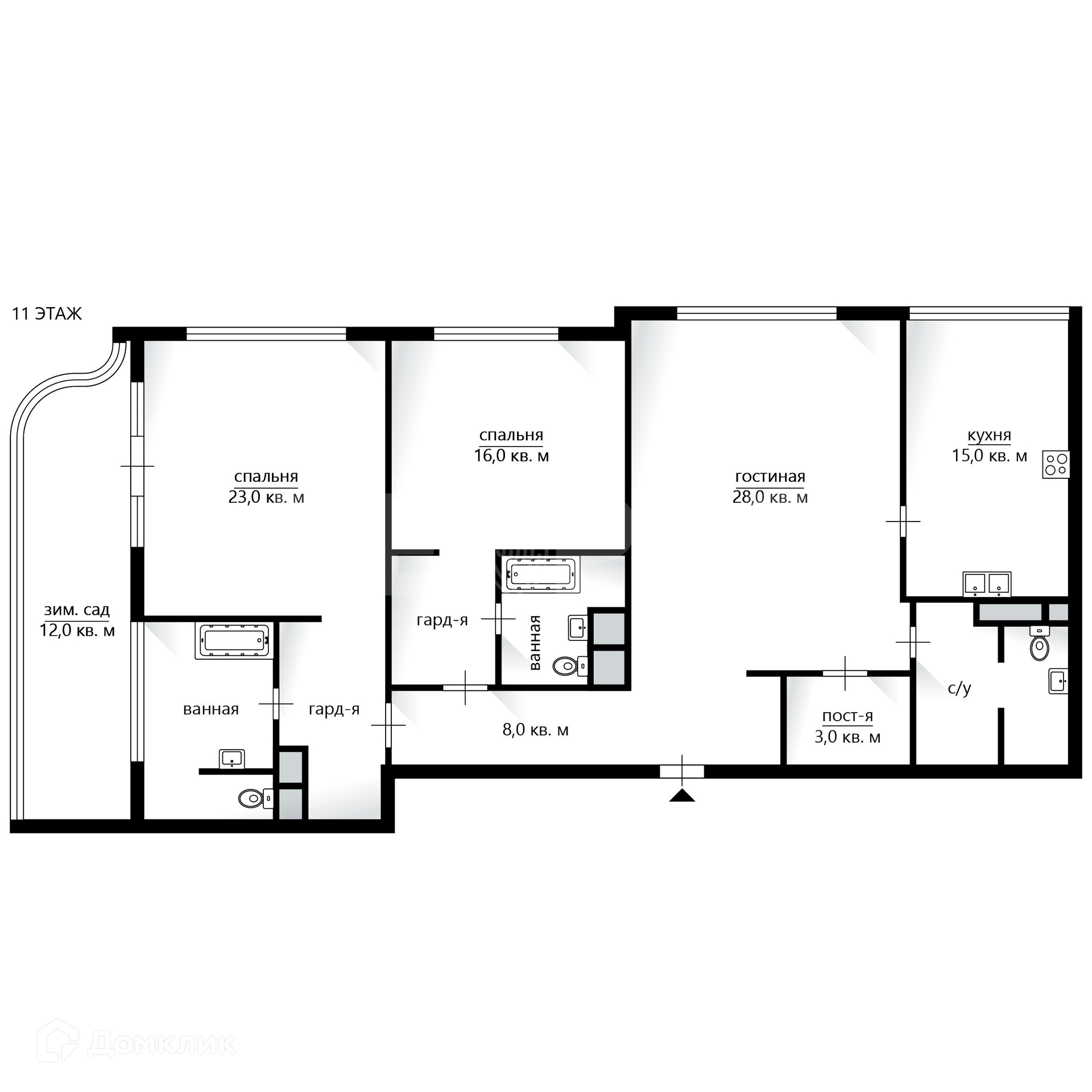 3-комнатная квартира, 124.2 м2, этаж 11 / 15, на продажу в Москве, Ленинградский проспект, 36с39