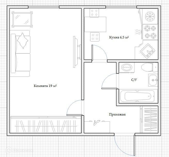 Общая площадь 32.5 м2