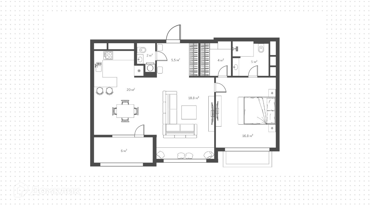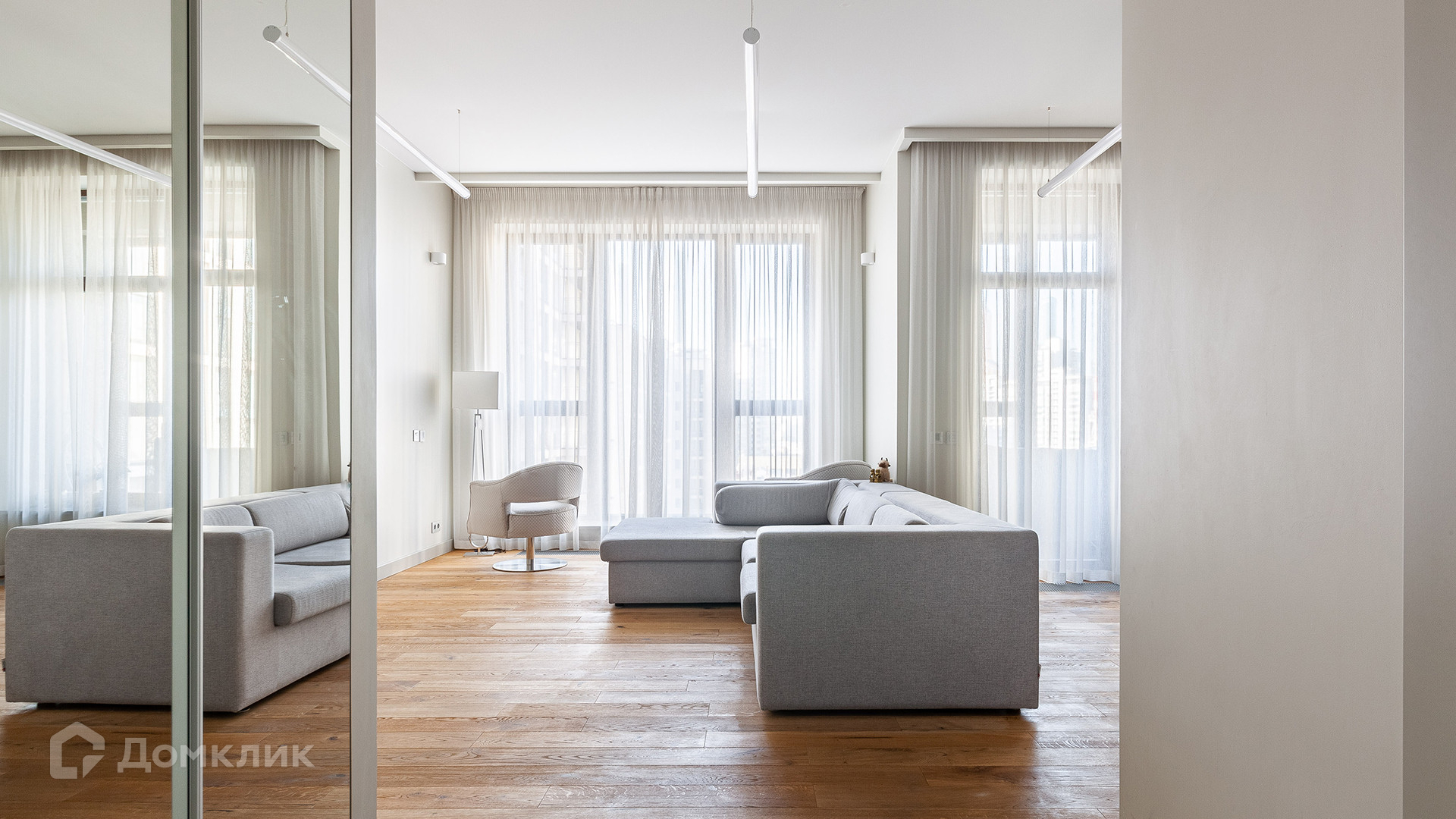 Планировка: просторная кухня-гостиная, спальня с санузлом и гардеробной комнатой, гостевой санузел, холл с вместительным встроенным шкафом. Окна квартиры выходят в благоустроенный двор и на башни «Москва-Сити».