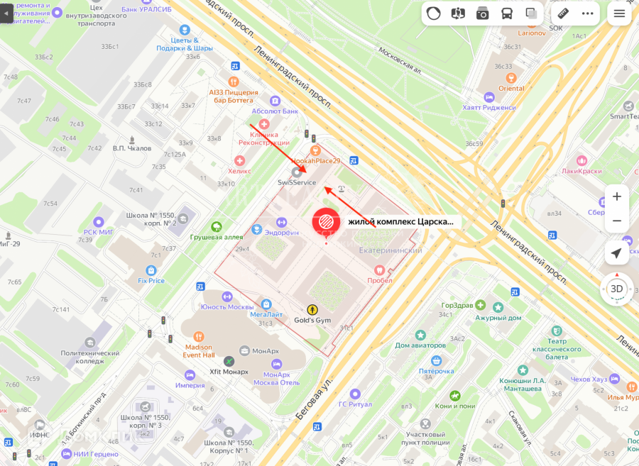Квартира располагается в одном из самых оживленных комплексов бегового района, презентабельные входные группы, подземный паркинг, двор без машин. В центре ЖК знаменитое историческое здание Царский павильон 1882 года постройки в котором уютно расположился ресторан Паризьен. На территории комплекса ЖК развитая инфраструктура: супермаркеты, винотека Simple Wine, пекарня Волконский, пиццерия Mates Pizza, аптека, салон красоты, салон Русский мех, фитнес клуб Gold,s Gym, школа танцев, аптека. Совсем скоро открывается химчистка. В пешей доступности метро Динамо, удобные выезды на 3-е кольцо, Ленинградский проспект, ул. Тверская-Ямская.