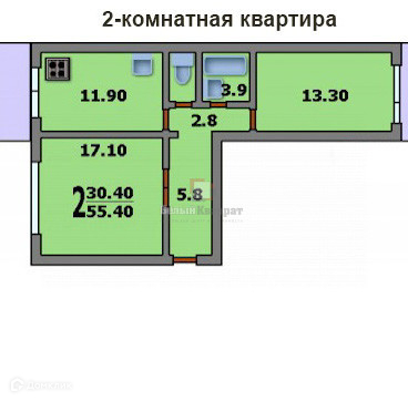 Общая площадь 52 м2