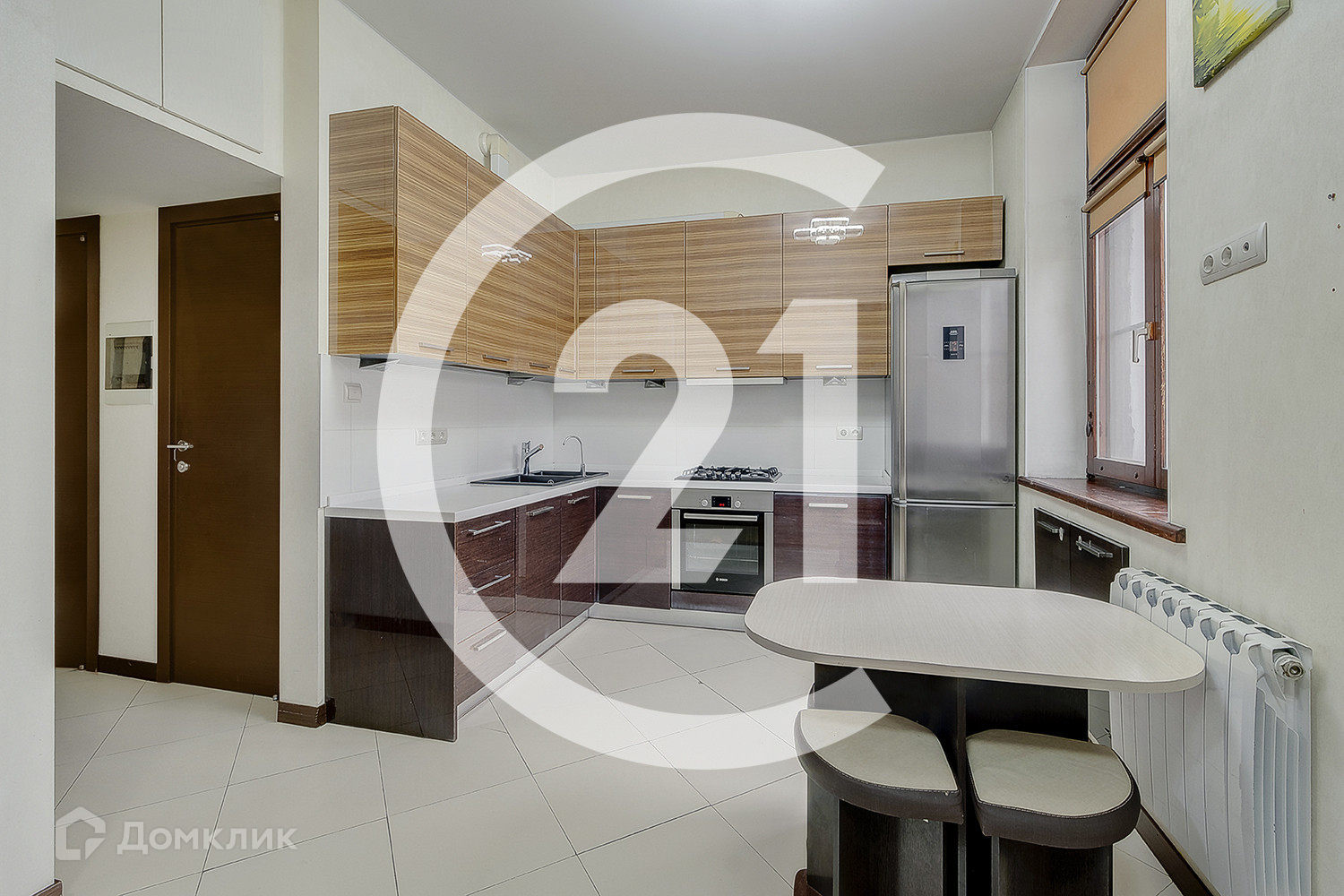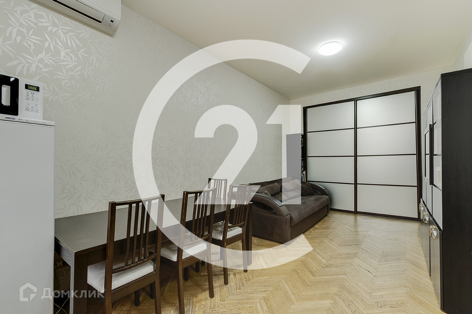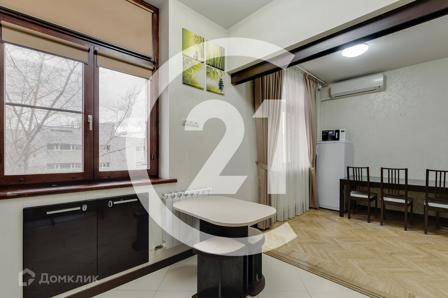 В левой части квартиры расположена уютная светлая кухня 8,4 кв.м, которая соединена раздвижной перегородкой с просторной гостиной, площадью 20.6 кв.м. Окна во двор, на восточную часть света. Оставляем в подарок кухонный гарнитур со встроенной техникой.