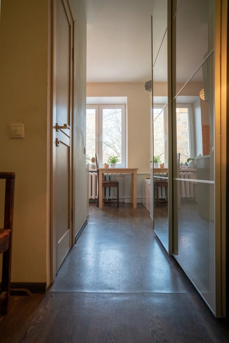 Кирпичный пост-сталинский дом с толстыми стенами. Закрытый зеленый двор (въезд через шлагбаум) со спортивной и детской  площадками. Парковка во дворе. Окна выходят на обе стороны (распашенка) во двор и на тихую улицу, много солнца. Прекрасная планировка была изначально: изолированные комнаты (в каждой - по балкону), просторная прихожая, кухня, раздельный с/у,  потолки 2,75.