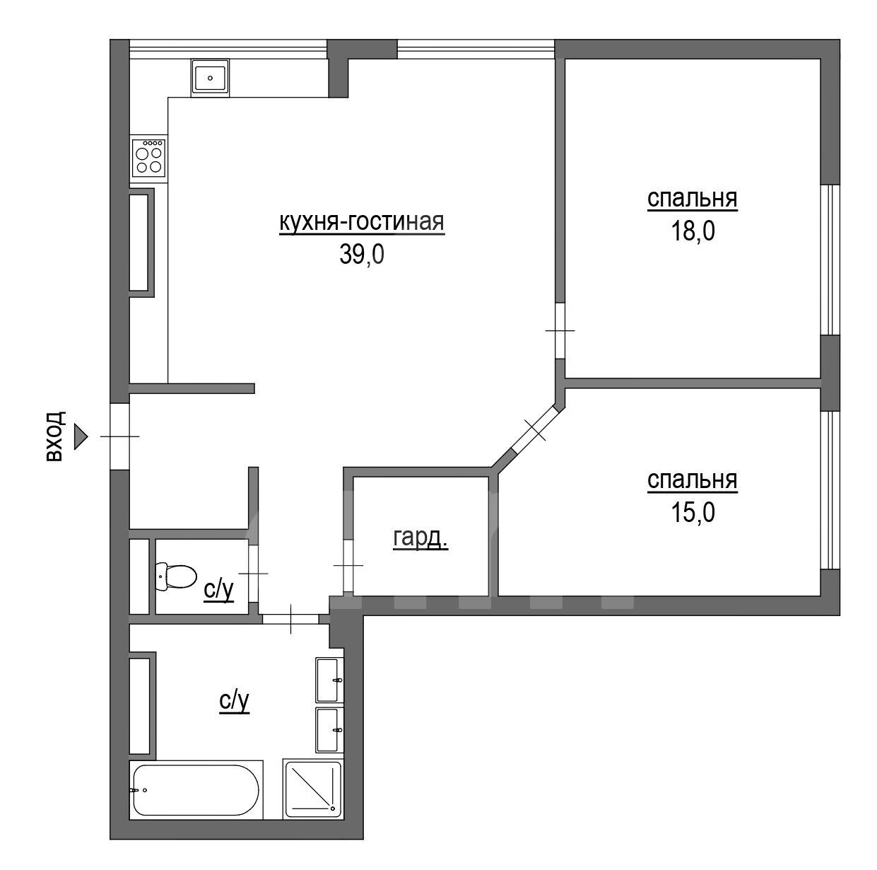 Площадь кухни 39 м2