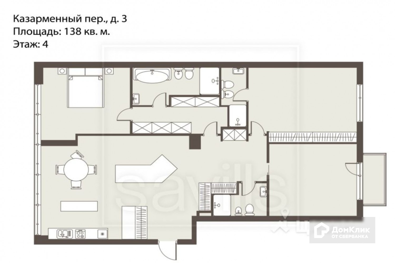 3-комнатная квартира, 138 м2, этаж 4 / 11, на продажу в Москве, Казарменный переулок, 3