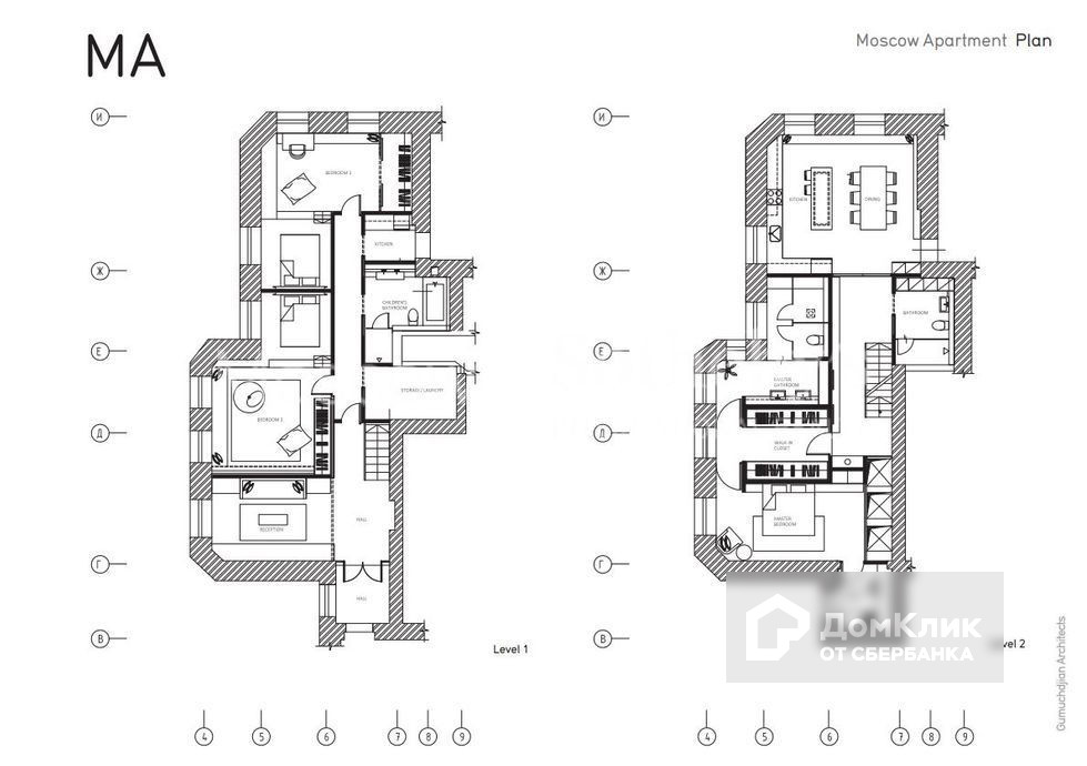 Второй уровень: кухня-столовая, гостиная, мастер-спальня с двумя гардеробными и полноценной ванной комнатой, гостевой санузел.