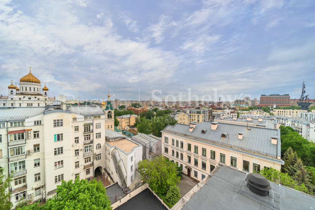 Благодаря высокому этажу и большому количеству окон, из комнат открываются панорамные виды на центр Москвы. С террасы и кровли открывается вид на все стороны света и архитектурные доминанты столицы: Кремлевский архитектурный ансамбль, ХХС, Памятник Петру l, Зачатьевский монастырь etc.