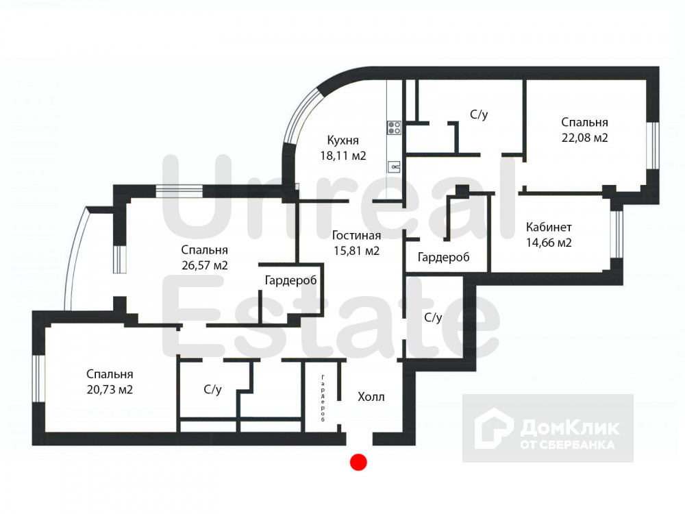 Удальцова, 65. Квартира с отделкой площадью 192.9 м2 на 4 этаже. Комнат: 5, спален: 4, с/у: 3. Отделка в современном стиле.