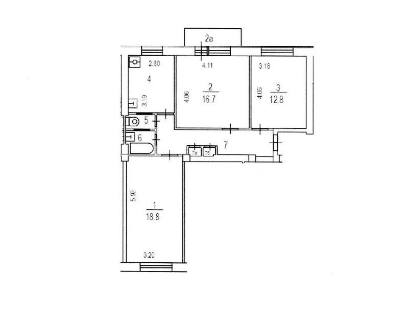 3-комнатная квартира, 71.9 м2, этаж 3 / 8, на продажу в Москве, улица Ибрагимова, 5А